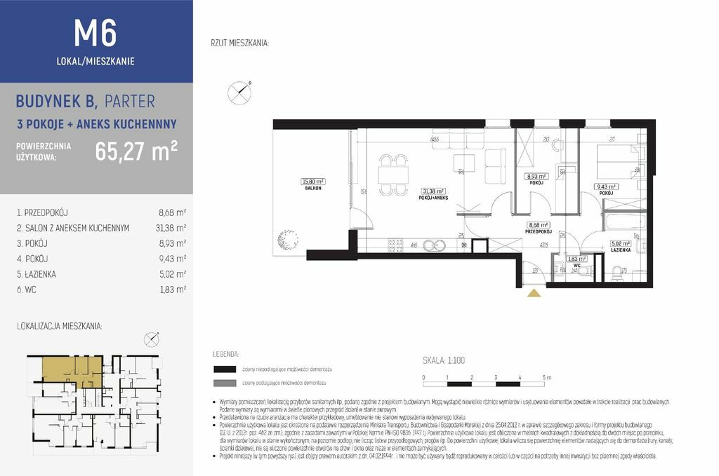 KUPNO OD DEWELOPERA, 0% prowizji, inwestycja oddana do użytkowaniaBudynek B , lokal:: M-6, balkon: 15,80 m