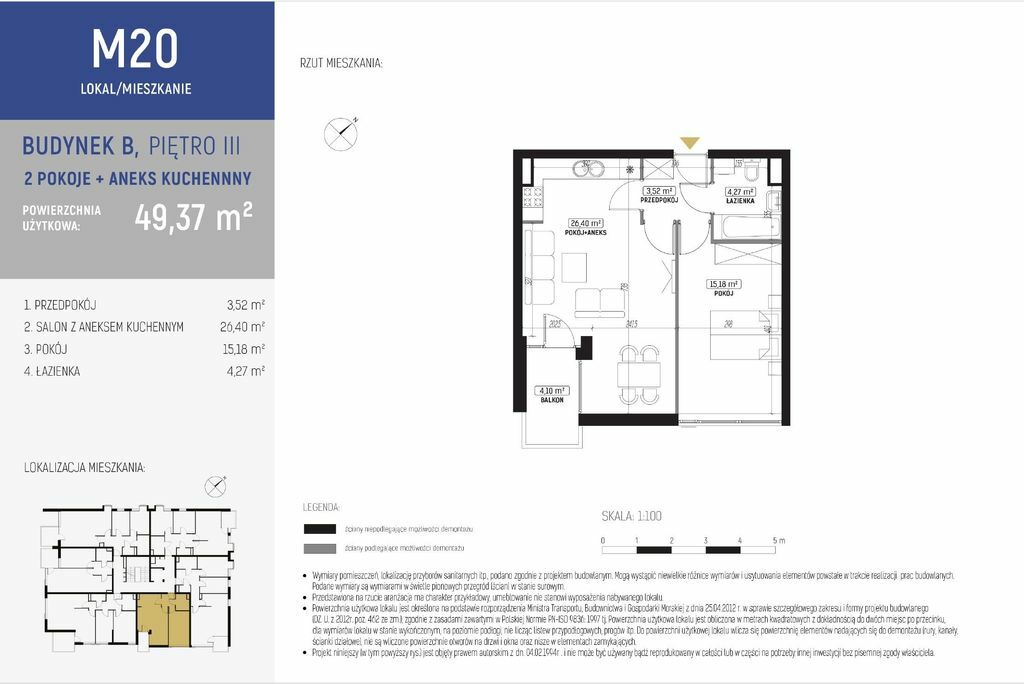 KUPNO OD DEWELOPERA, 0% prowizji, inwestycja oddana do użytkowaniaBudynek B , lokal:: M-20, balkon: 4,10 m