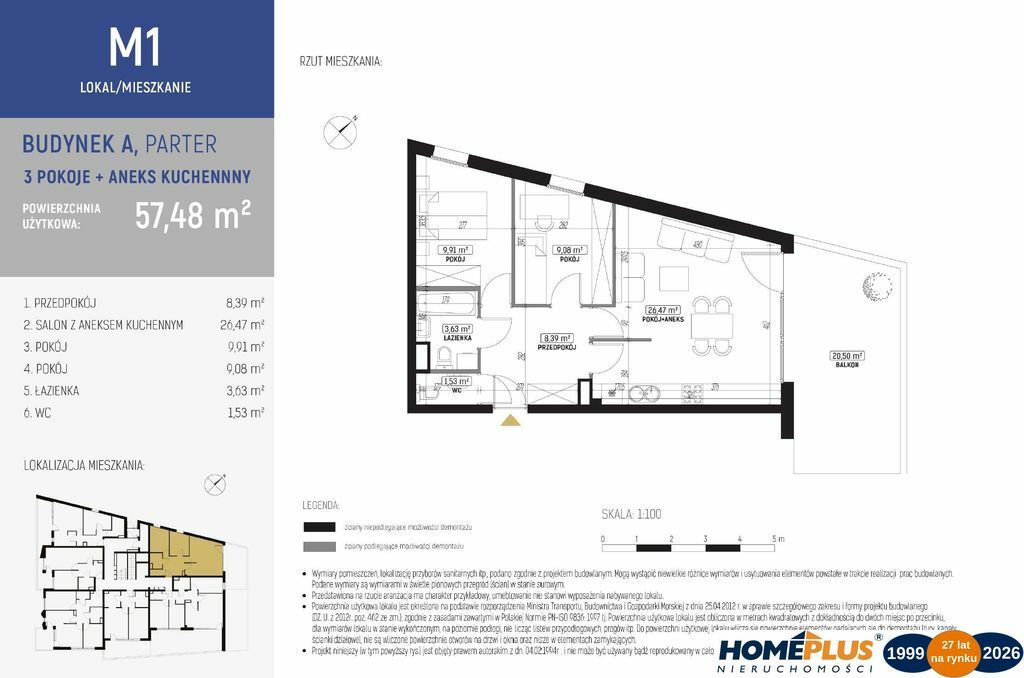 KUPNO OD DEWELOPERA, 0% prowizji, inwestycja oddana do użytkowaniaBudynek A , lokal:: M-1, balkon: 20,50 m