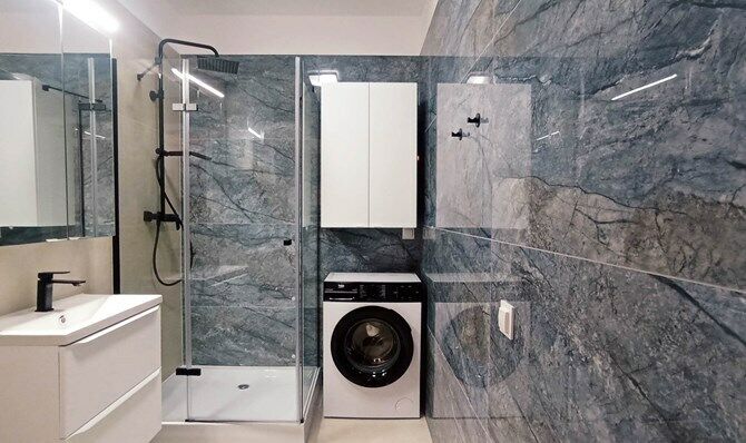 Układ: salon z aneksem kuchennym, sypialnia, łazienka.