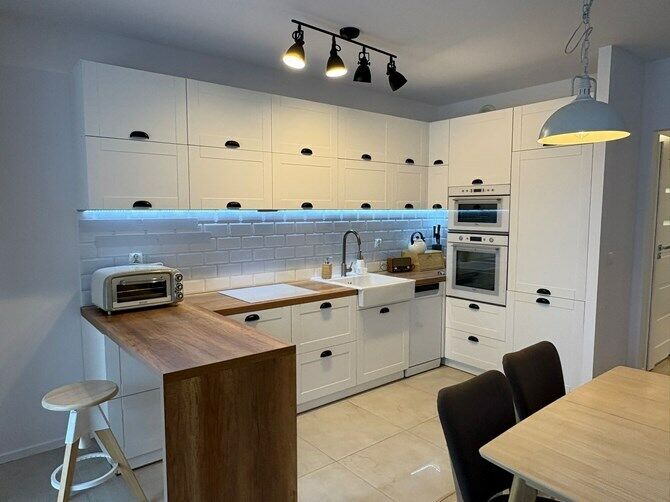 piekarnik, mikrofalówkę, lodówkę w zabudowie.