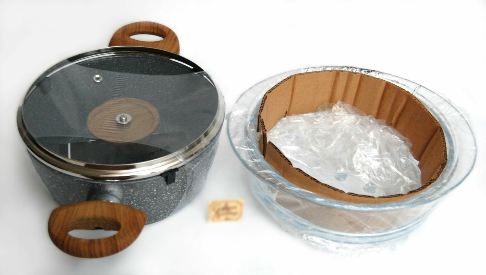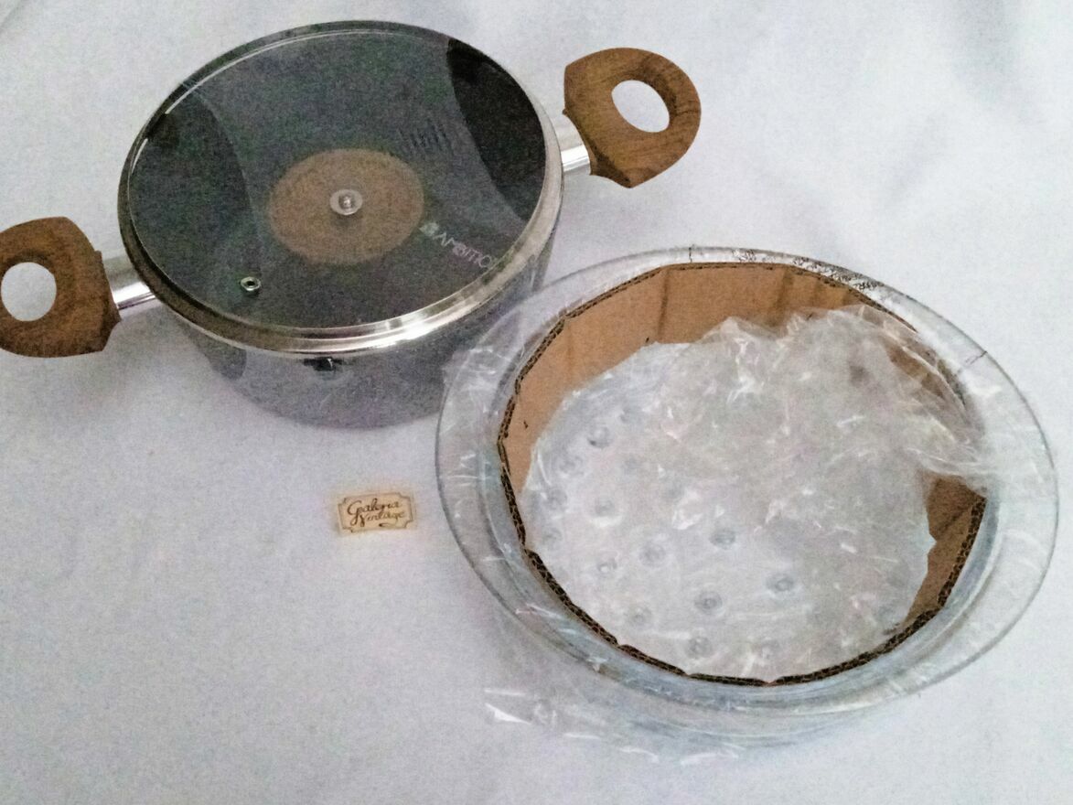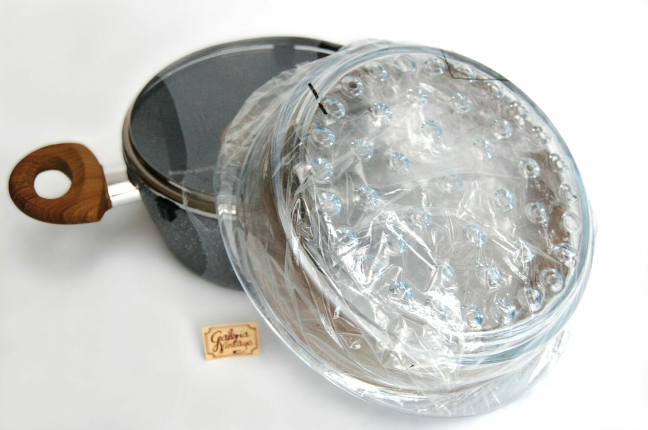 Garnek jest nowy, zafoliowany, w tekturowym pudełku.