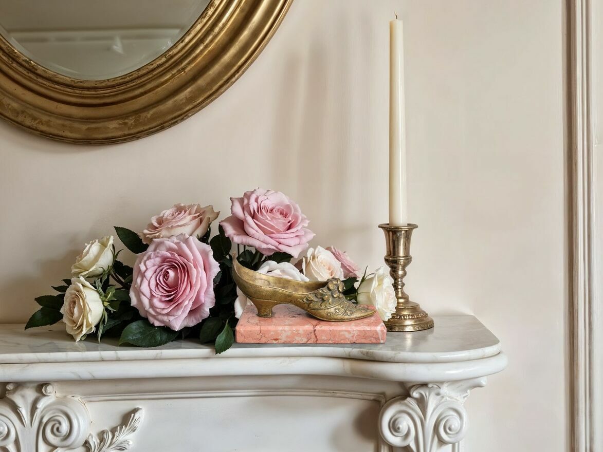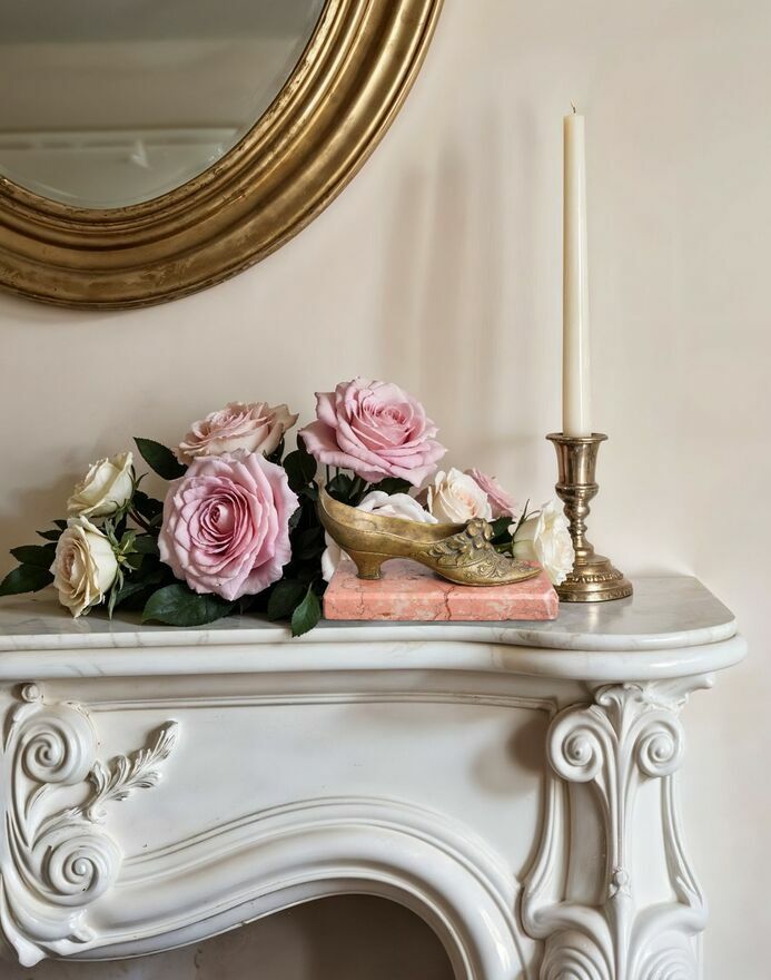Barokowy but, popielniczka, mosiądz, różowy marmur, barok