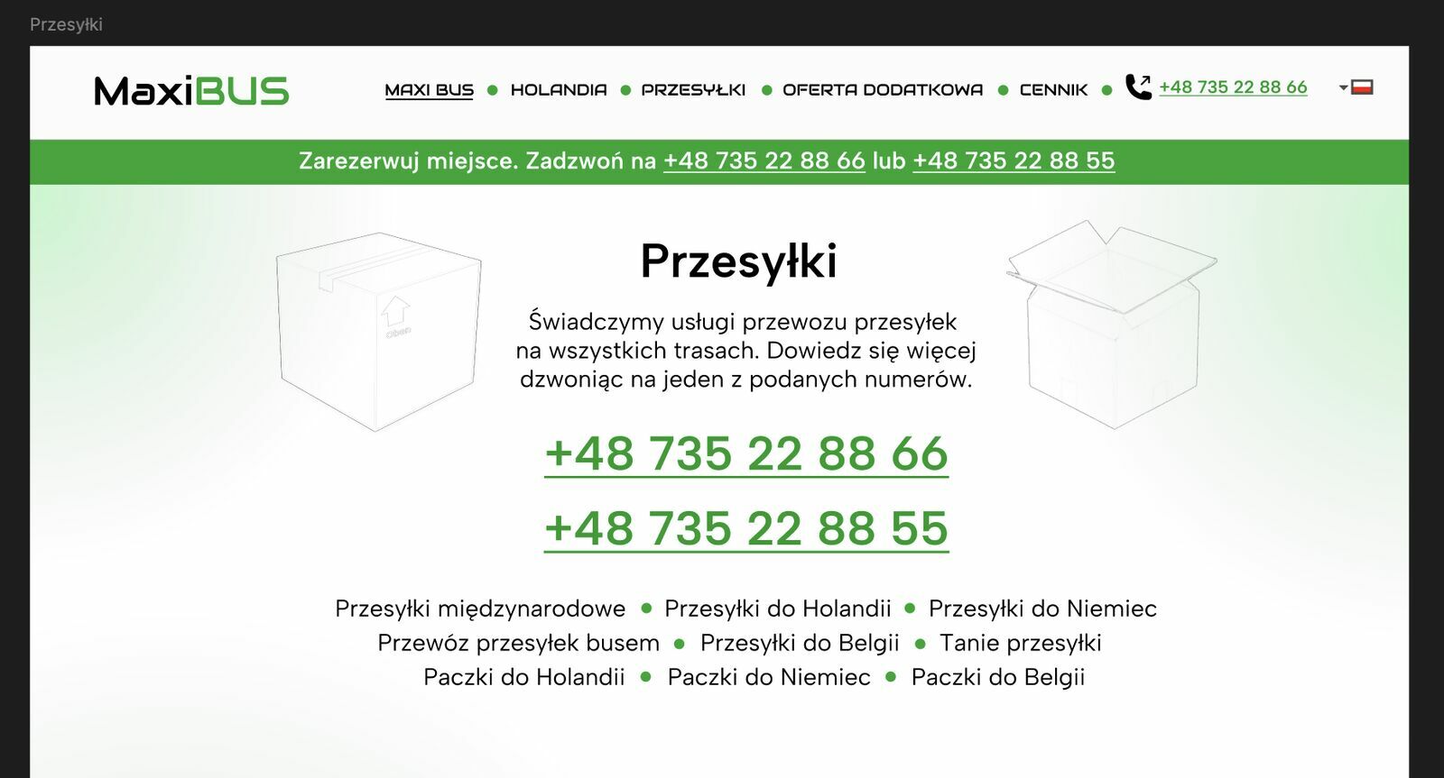 Oferujemy regularne busy do Holandii Niemiec i Belgii z Polski w systemie door-to-door. Odbieramy pasażerów spod domu i dowozimy pod wskazany adres za granicą Nasze pojazdy są wyposażone w wygodne fotele, klimatyzację i dodatkową przestrzeń na bagaż, dzięki czemu podróż jest komfortowa nawet na długich trasach.Tel +48 735 22 88 55