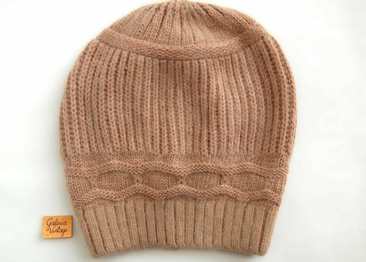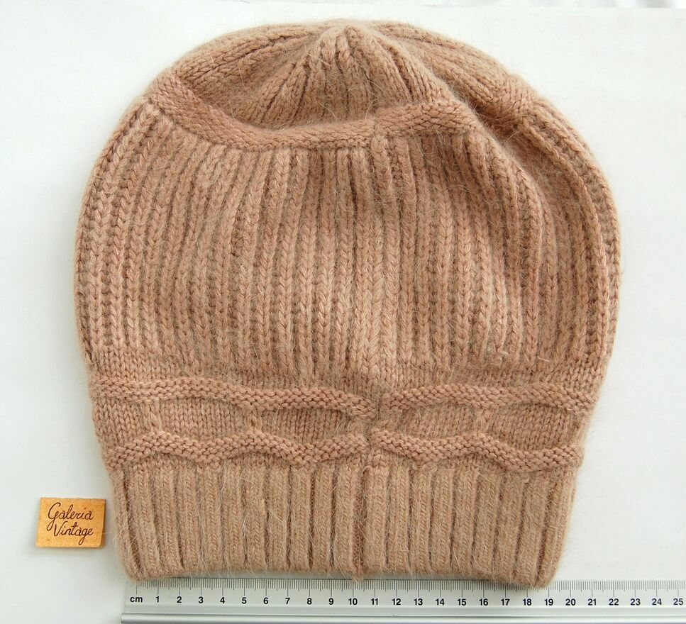 Czapka damska zimowa w kolorze ciepłego beżu. Materiał ciepły, gruby, puszysty i miły w dotyku. Skład: 56% akryl, 31% poliester, 12% angora, 1% elastan. Stan zachowania bardzo dobry, jak nowa.Średnica ok. 40 cm plus kilka cm więcej po rozciągnięciu czapki.