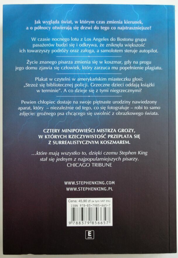 Cztery minipowieści Mistrza Grozy, w których rzeczywistość przeplata się z surrealistycznym koszmarem.