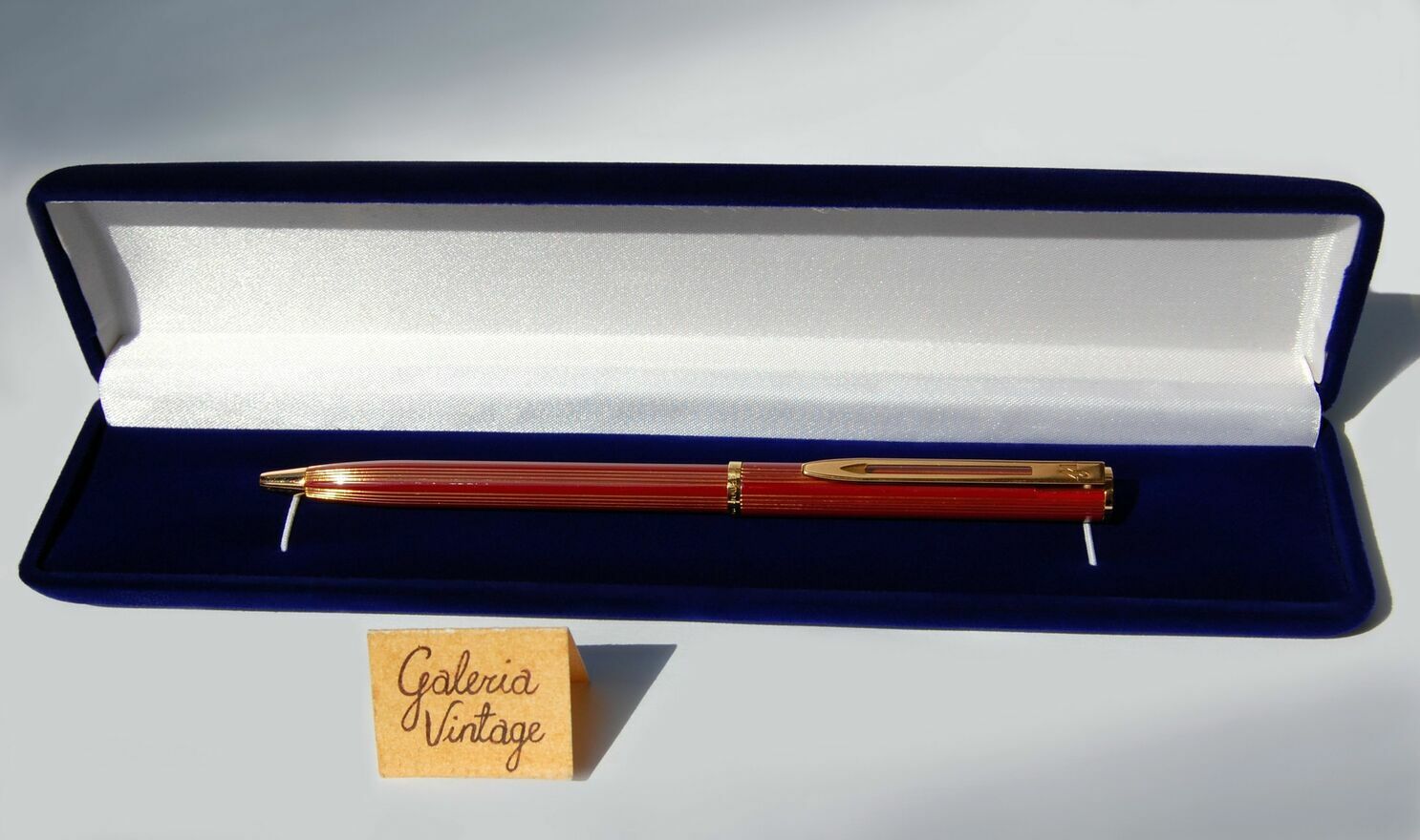 Rzadko spotykany, kolekcjonerski długopis vintage z lat 90 - Waterman, w kolorze burgundowym i złotym. Obudowa długopisu jest pokryta błyszczącym lakierem o barwie burgundowej ze złotymi, żłobionymi pasmami. Detale są złocone. Mechanizm jest obrotowy. Długopis ma markowy wkład w kolorze błekitnym i znajduje się w oryginalnym etui pokrytym welurem w kolorze atramentowego błękitu. Długopis jest nowy, był jedynie przechowywany. Polecam kolekcjonerom.CENA NIE PODLEGA NEGOCJACJI.