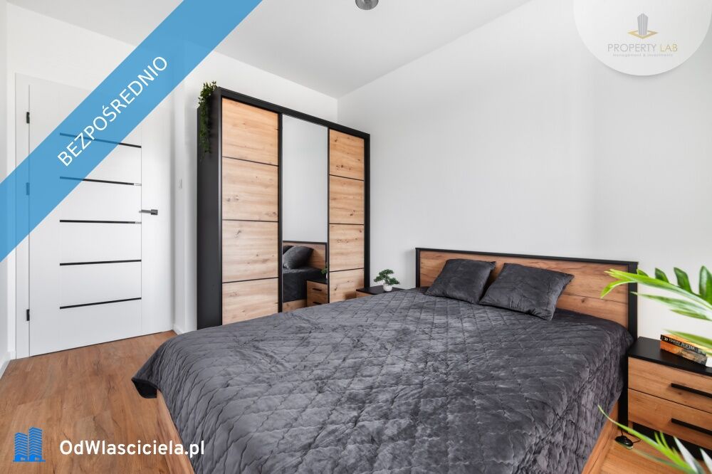 W salonie znajduje się wygodna kanapa, witryna oraz szafka RTV. Kuchnia posiada meble w zabudowie i sprzęt AGD: lodówkę, piekarnik, płytę ceramiczną oraz okap. W sypialni znajduje się duże łóżko i pojemna szafa, a w łazience – pralka. Dodatkowym atutem jest balkon.