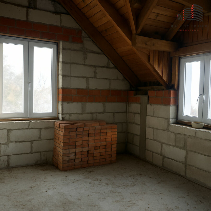 Budynek to połówka bliźniaka oddana do użytkowania w 2019 roku z zewnątrz ukończona. Wnętrze w stanie surowym zamkniętym. Posadowiony na działce 448 m2.