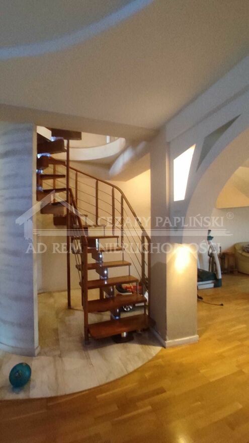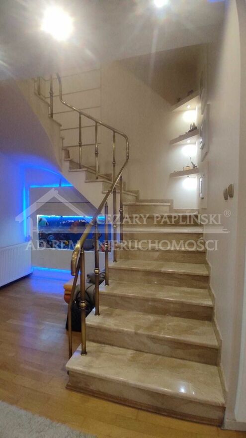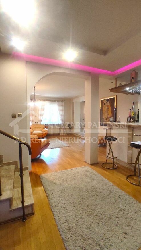 część mieszkalna o podwyższonym standardzie wykończenia (m.in. marmur, gres, parkiet drewniany, zabudowy typu Komandor, kuchnie w zabudowie),schody wykończone drewnem z elementami mosiężnymi,poddasza użytkowe i nieużytkowe,piwnice,garaż dwustanowiskowy pod częścią właścicielską,ok. 100 m² powierzchni rekreacyjnej pod częścią wynajmowaną, obejmującej m.in. saunę, prysznic, siłownię oraz przestrzeń wypoczynkowo-rozrywkową,dodatkowa przestrzeń przygotowana pierwotnie jako woliera- obecnie bez ptaków, oczyszczona, z pozostawionymi elementami aranżacyjnymi (dekoracyjne formy zieleni), co daje szerokie możliwości adaptacji (np. strefa relaksu, sala hobby, fitness, pokój zabaw),dwa niezależne lokale mieszkalne (aktualnie wynajmowane) z osobnym wejściem - gotowy produkt inwestycyjny.Nieruchomość oferuje również wyjątkowo zagospodarowaną część zewnętrzną:
