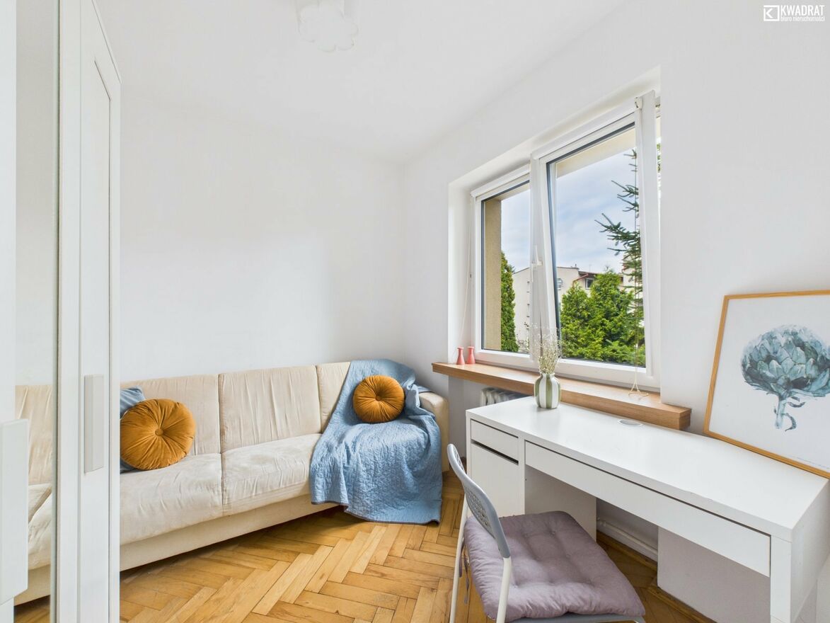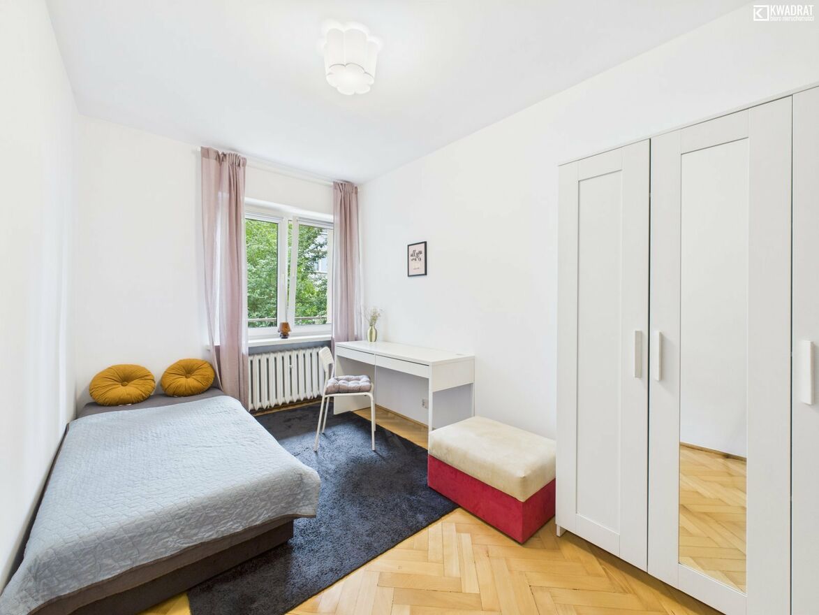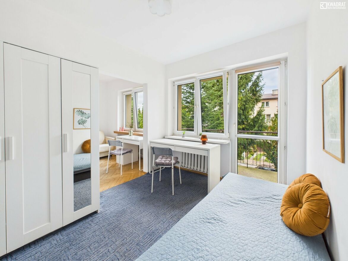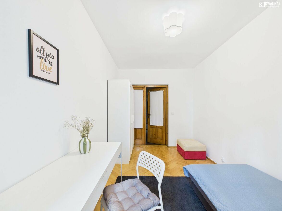 - 2 POKOJE 11,36 m2 i 10,73 m2(obecnie oddzielone jedynie lekką konstrukcją- ścianką działową, w przeszłości całe pomieszczenie pełniło funkcję salonu)
