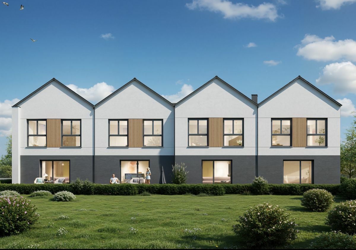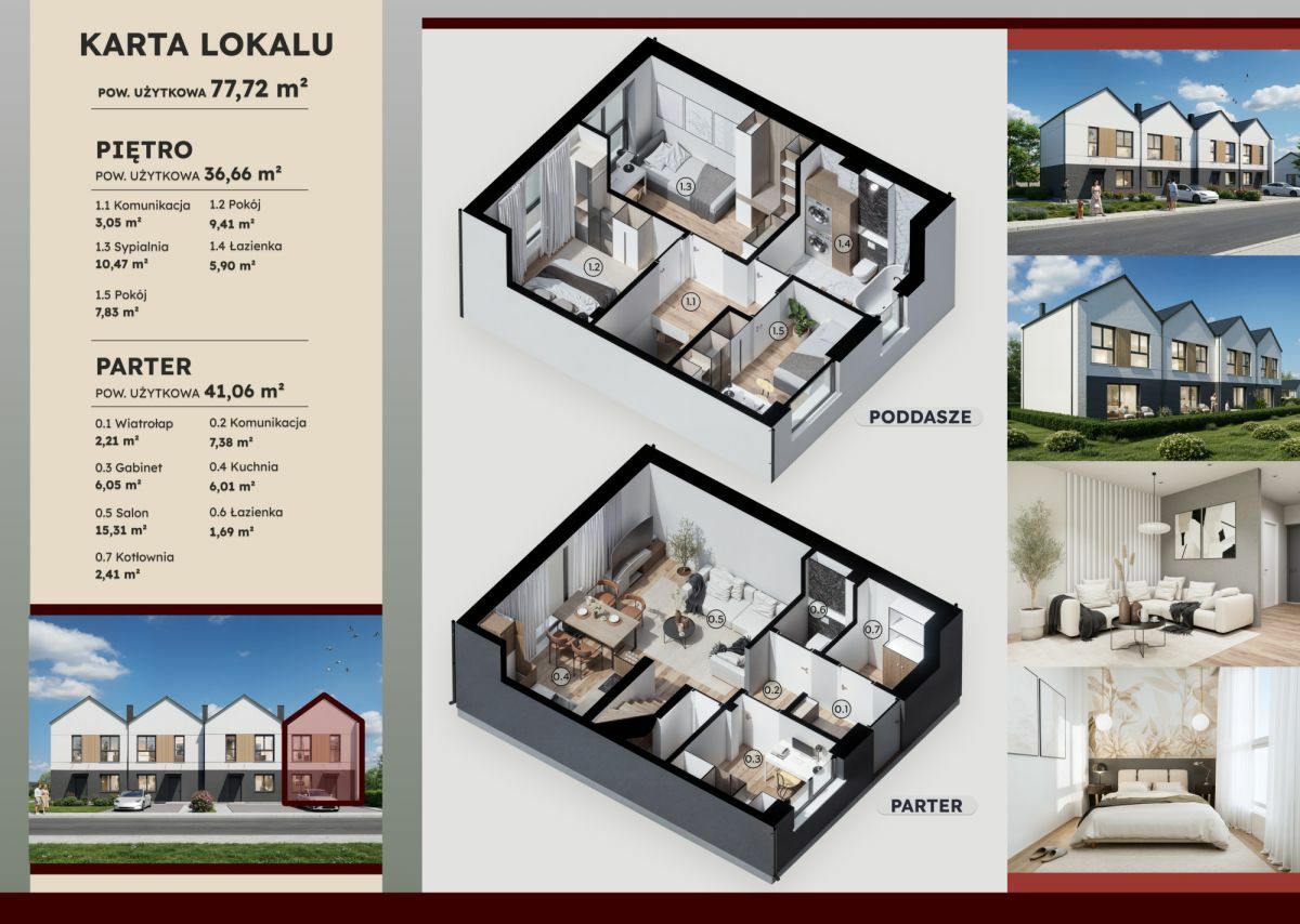 Dom w zabudowie szeregowej, segment środkowy, oddawany w stanie deweloperskim w IV kwartale 2026 roku. Powierzchnia 77,72 m2, działka około 150 m2 z podjazdem z kostki brukowej na 2 samochody.Parter