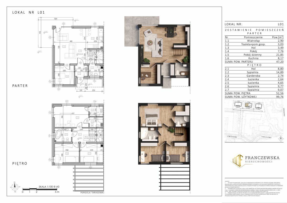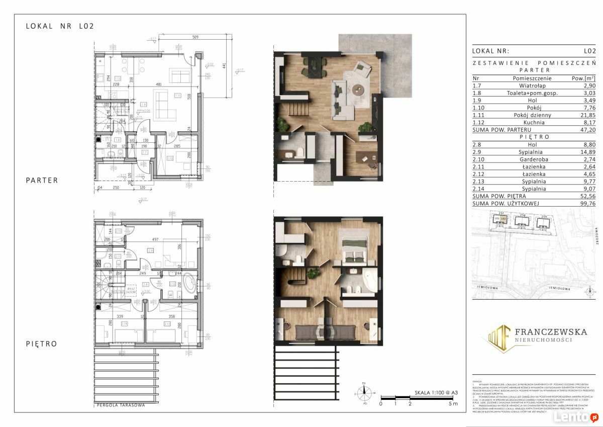 Na sprzedaż dom jednorodzinny dwu lokalowy o pow całkowitej 99,76 m2 w Lublinie ul. Skowronkowa, usytuowany na działce o powierzchni ok. 250 m2.Zestawienie powierzchni: