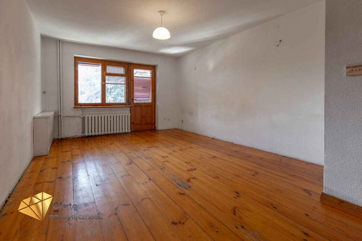 Na podłogach parkiet, okna drewniane ( do wymiany)