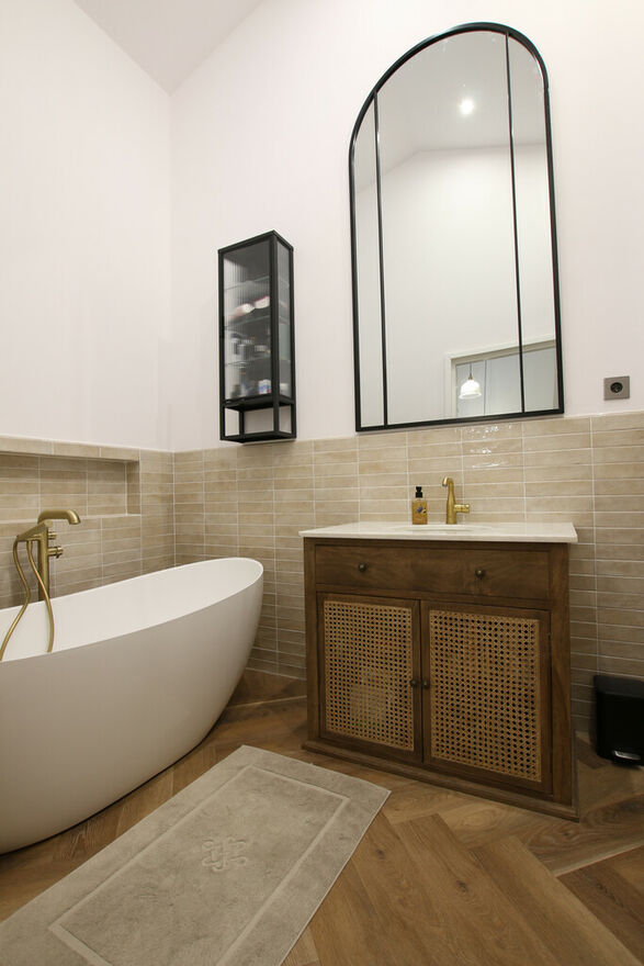 - hiszpańskie płytki łazienkowe, armatura Grohe,