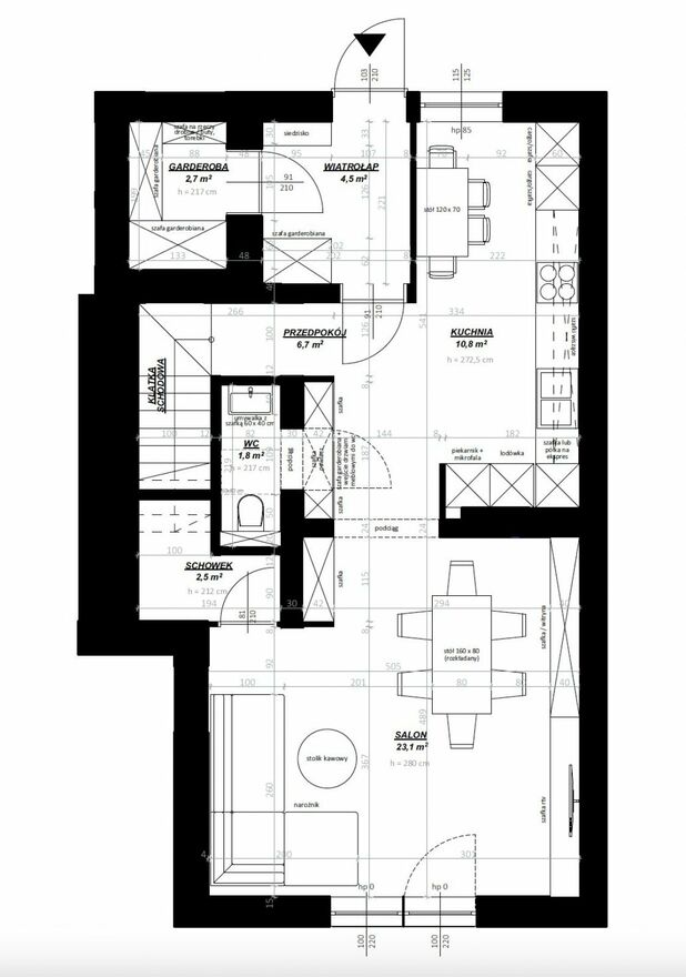 - pomieszczenie gospodarcze dostępne z zewnątrz budynku 2,7m2,