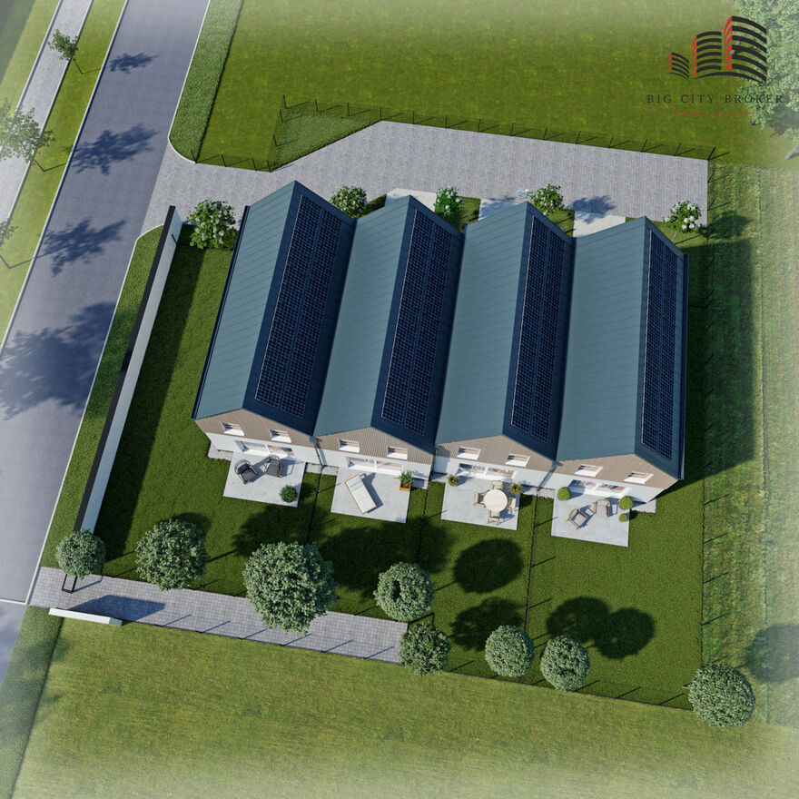 Projekt Q4 to połączenie estetyki nowoczesnych stodół z zaawansowanymi technologiami budowlanymi. Budynki znajdują się tuż przy osiedlu, co pozwala korzystać z wszelkich udogodnień, jakie oferuje okolica, jednocześnie dając przywileje mieszkania we własnym domu z ogródkiem.