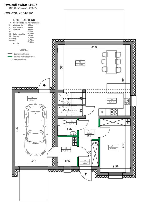 - 121 m2 powierzchni użytkowej + garaż 19.78 m2