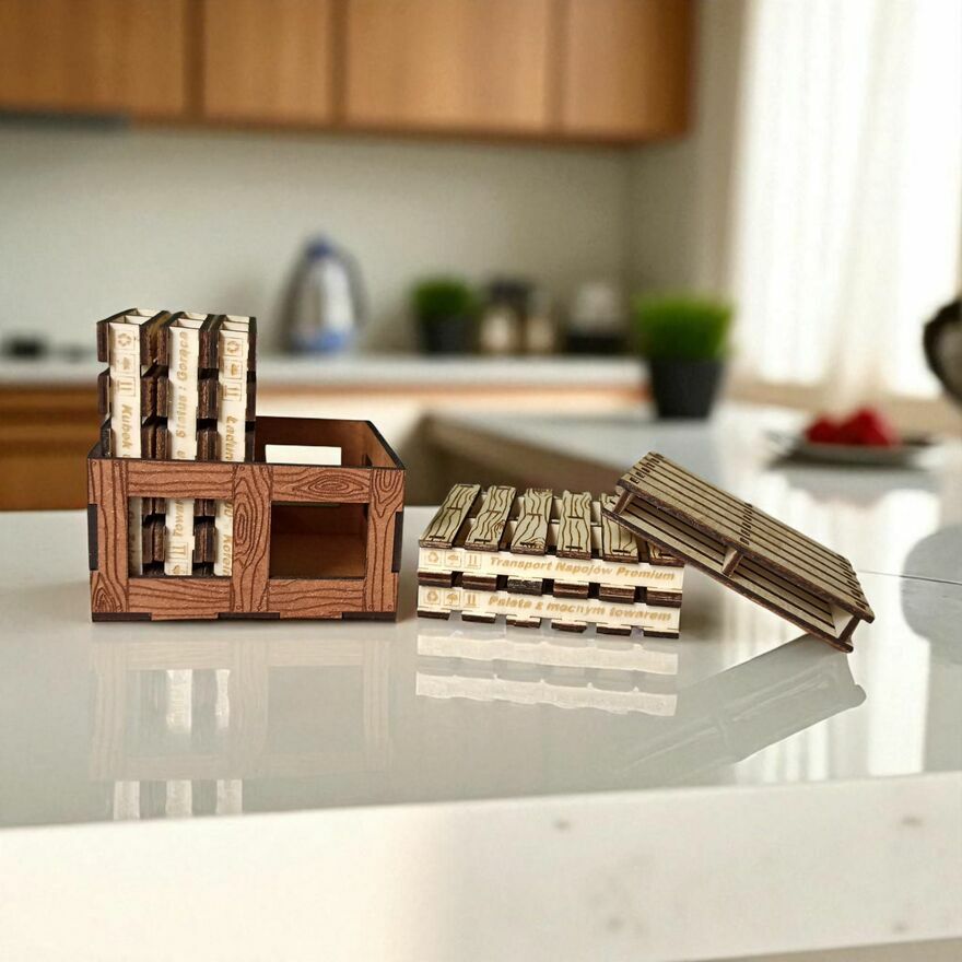 Drewniane Podstawki Pod Kubek w Kształcie Euro Palety!W ZESTAWIE ZANDUJĘ SIĘ 6 SZTUK PODSTAWEK + ORGANIZER GRATIS!