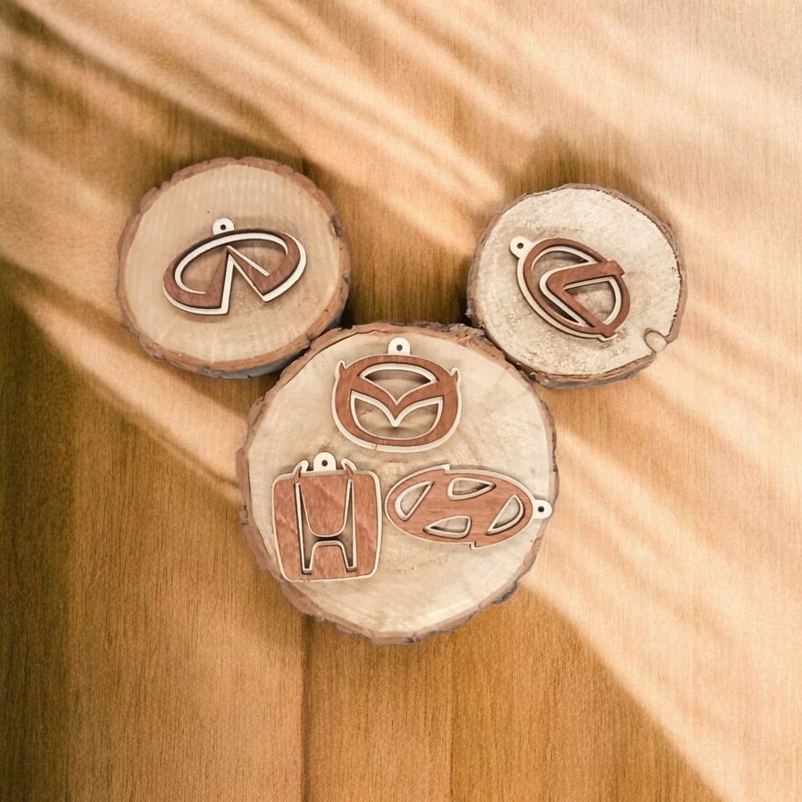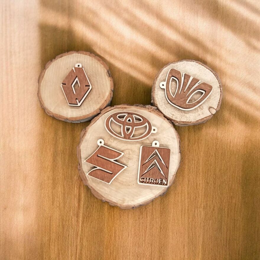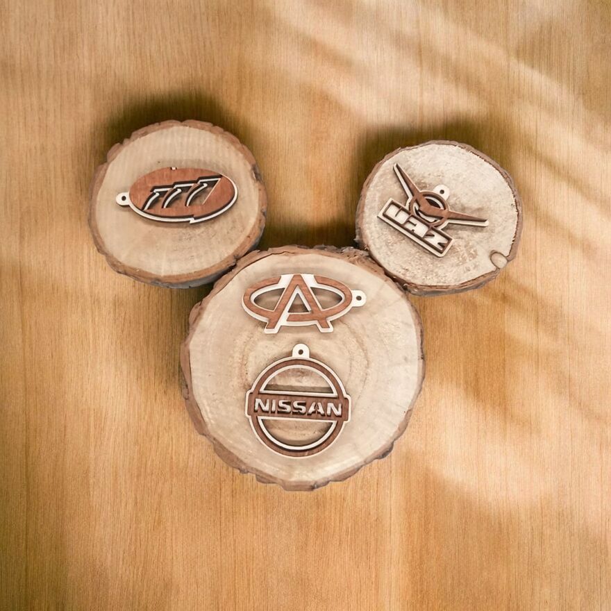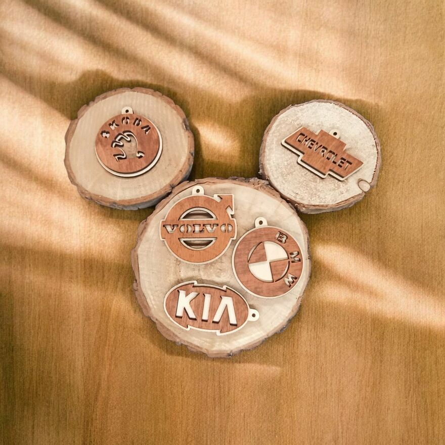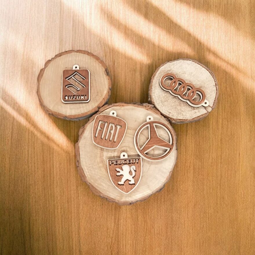 Drewniany Brelok z Logo Twojego Auta!*Dwustronny wzór: Logo jest widoczne z obu stron zawieszki!