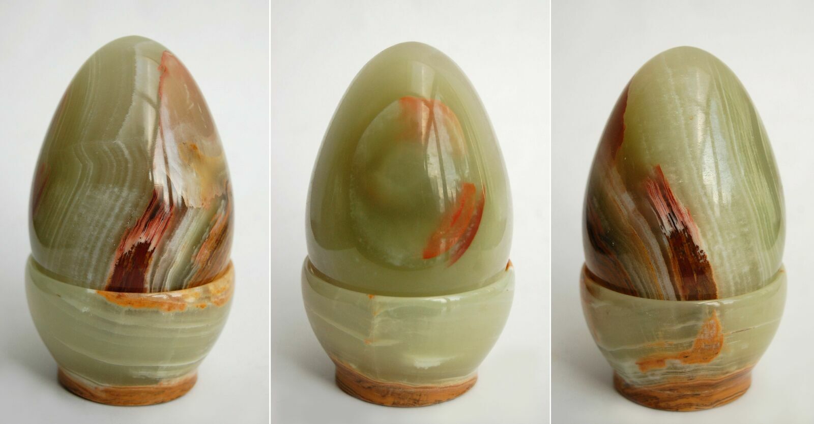 Duże jajko z kamienia z podstawką, onyks pakistański 11 cm