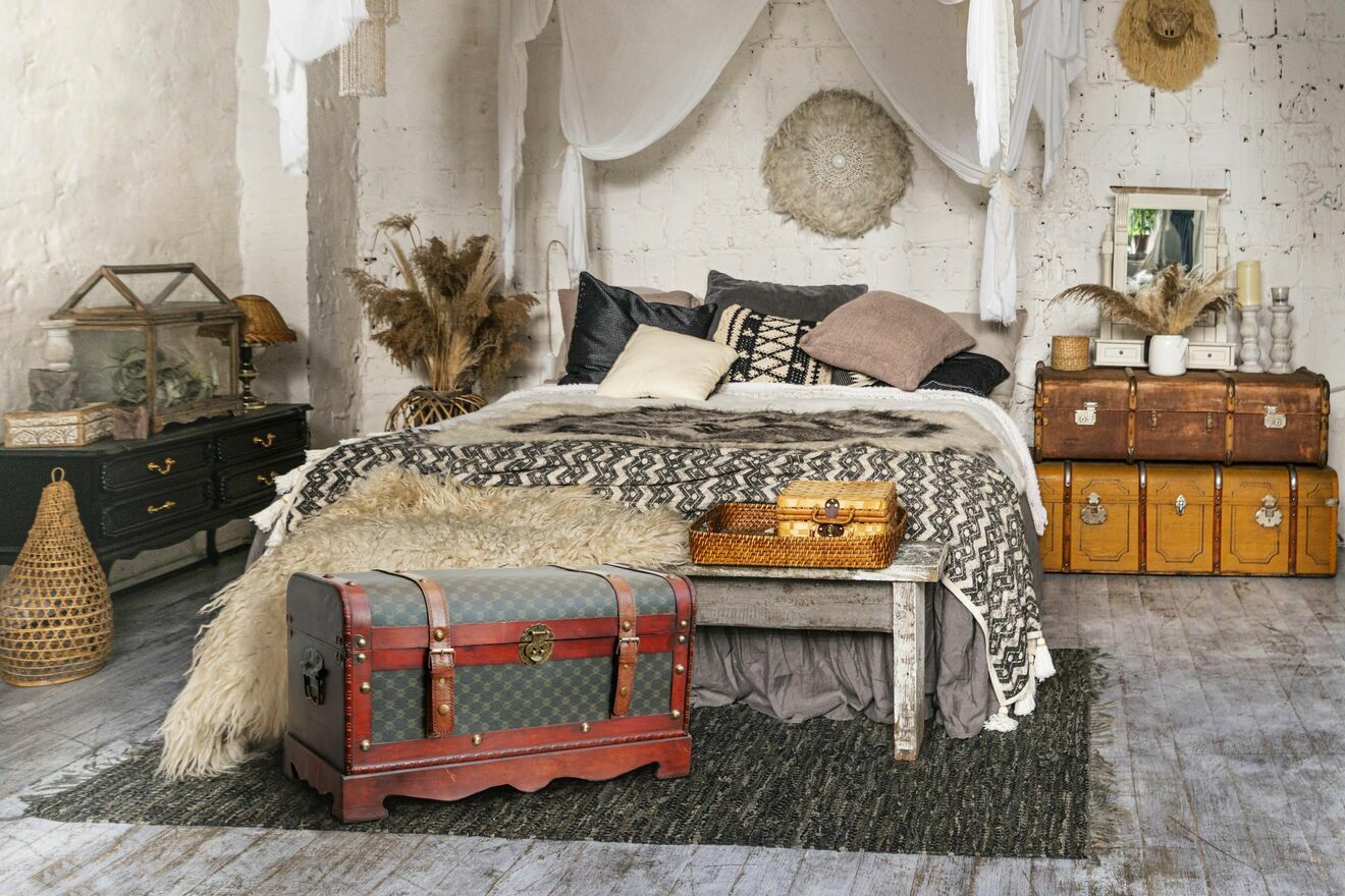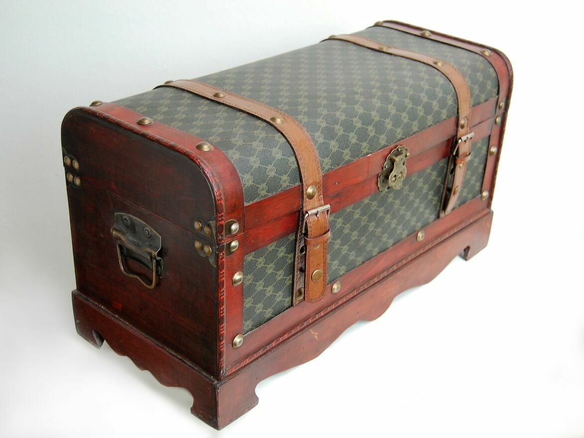Duży kufer, skrzynia drewniana, vintage, kolonialny styl