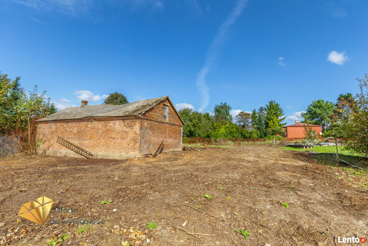 Na działce budynek usługowy z cegły do remontu lub rozbiórki.