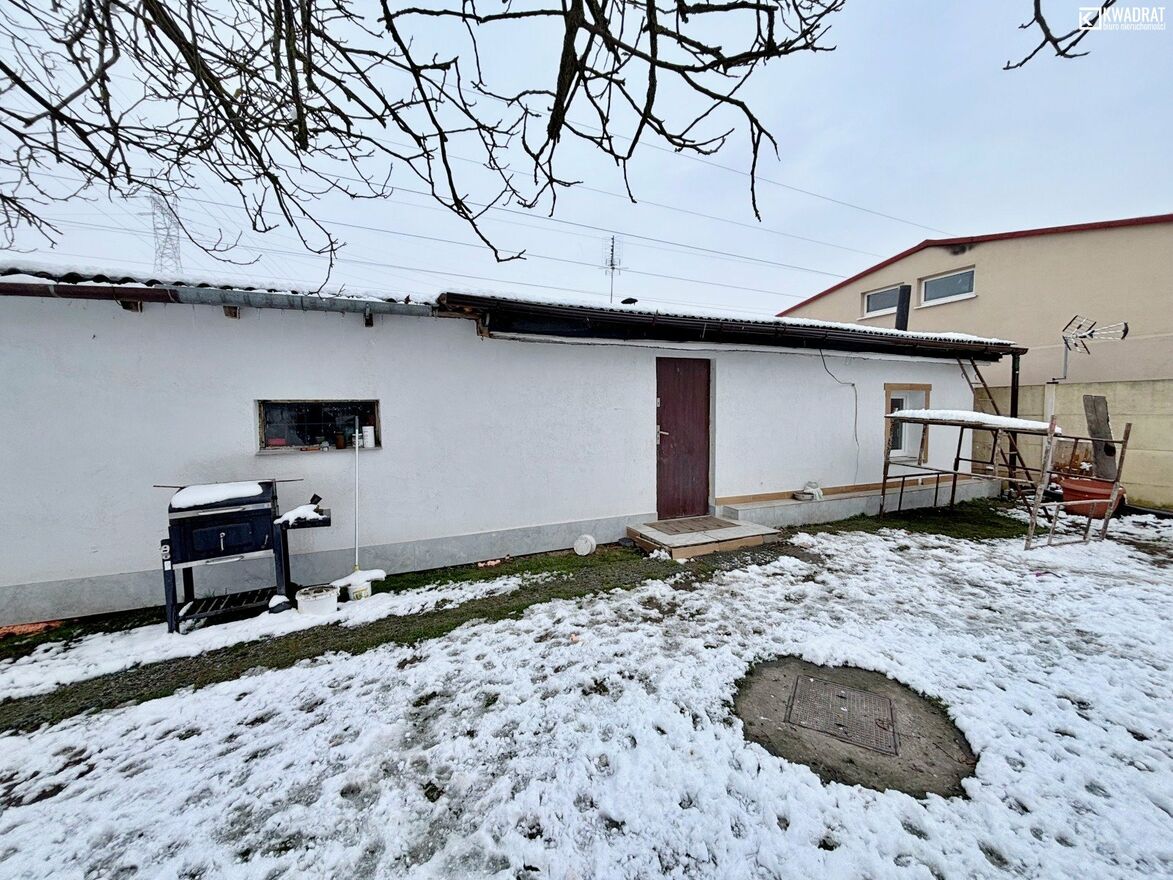 Zabudowana jest budynkiem garażowo-użytkowym o powierzchni zabudowy ok 110 m2.