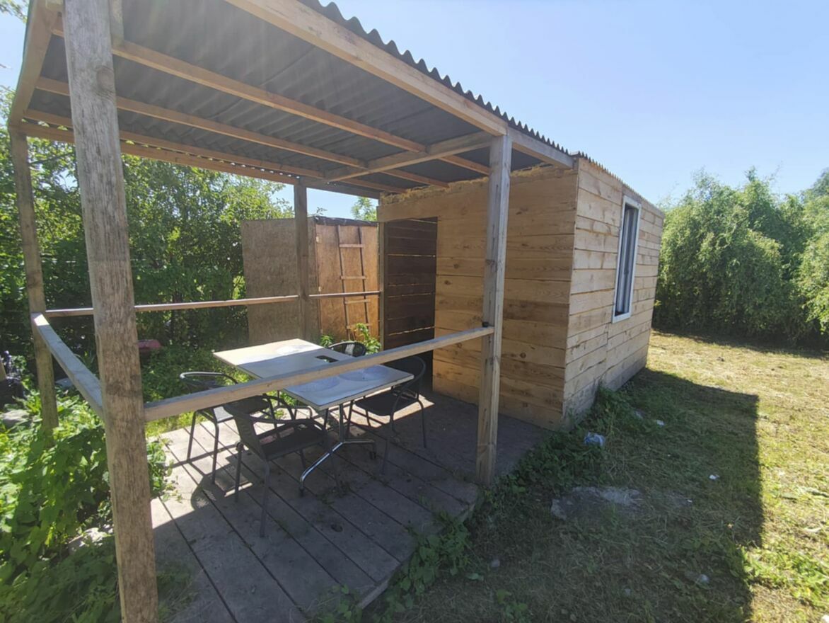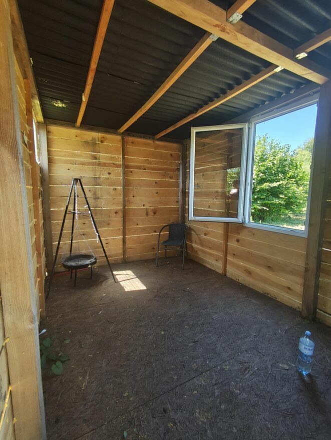 - Domek drewniany wybudowany w 2025r, powierzchnia 2,5m x 3,75m z tarasem o takiej samej powierzchni.
