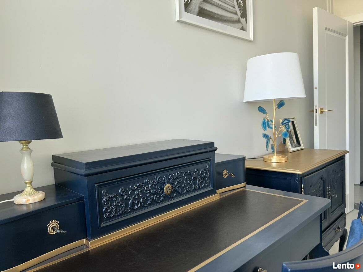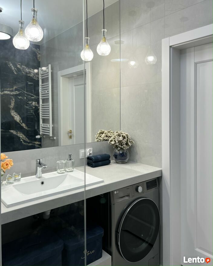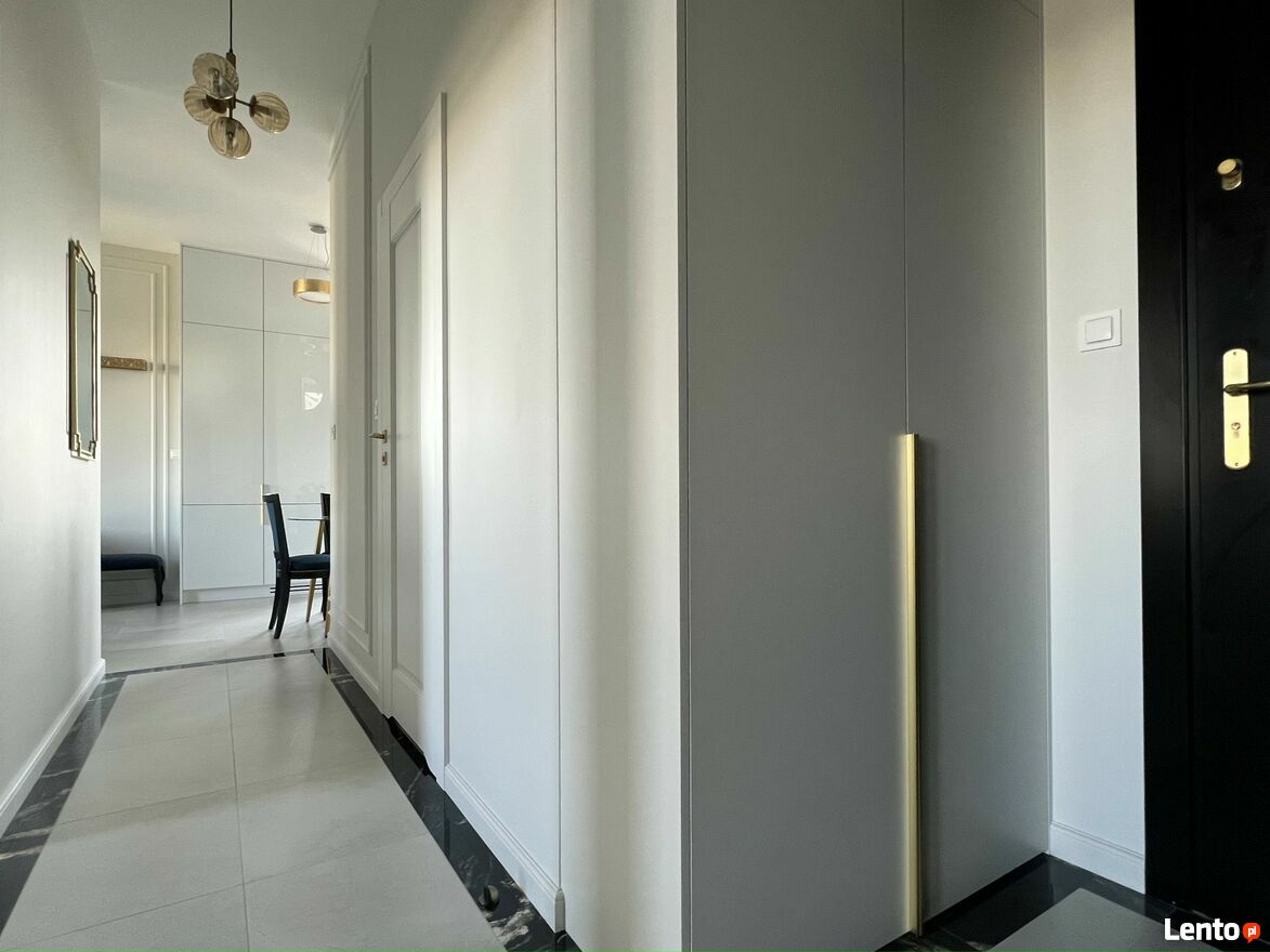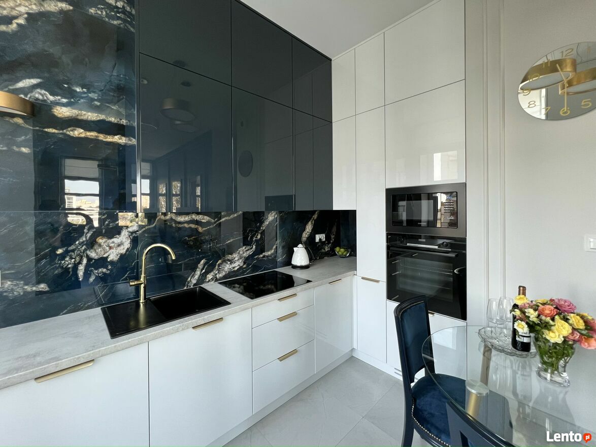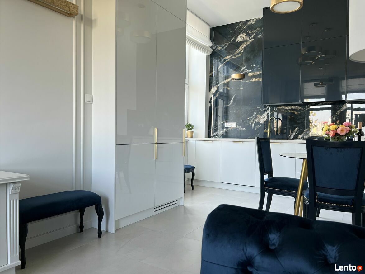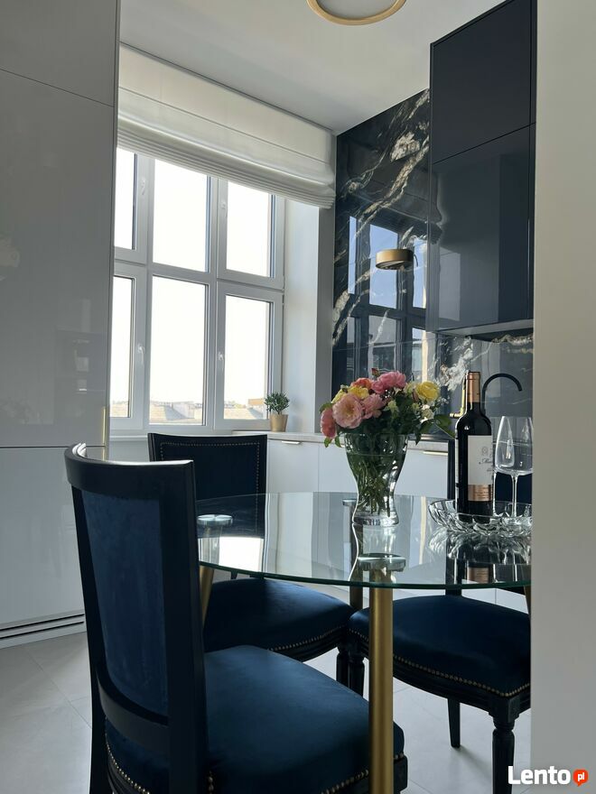 Mieszkanie zostało zaprojektowane z troską o najdrobniejsze detale, oryginalny styl oraz funkcjonalność. Wykończone w wysokim standardzie. Większość mebli została wykonana na zamówienie, co zapewnia niepowtarzalny, ekskluzywny charakter tego miejsca. Wyposażone w wysokiej jakości wszystkie potrzebne sprzęty AGD oraz funkcjonalne szafy w zabudowie.