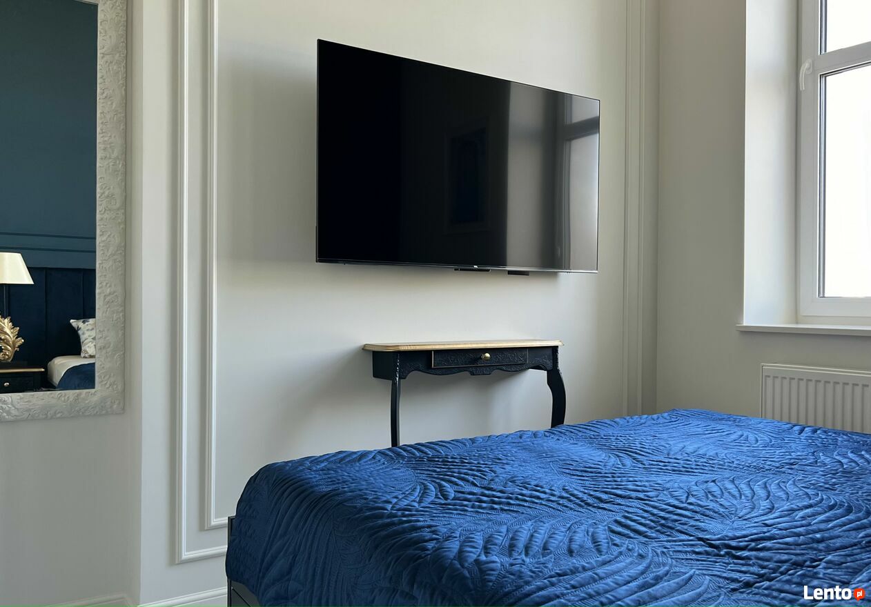 Telewizor 55" jest dostępny zarówno w pokoju dziennym, jak i w sypialni.