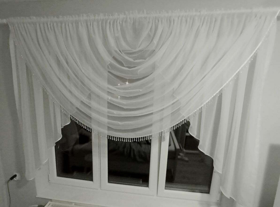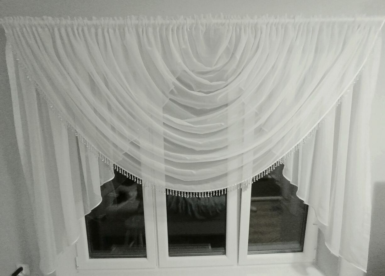 Firana gotowa do powieszenia bez użycia żabek, haczyków itp.