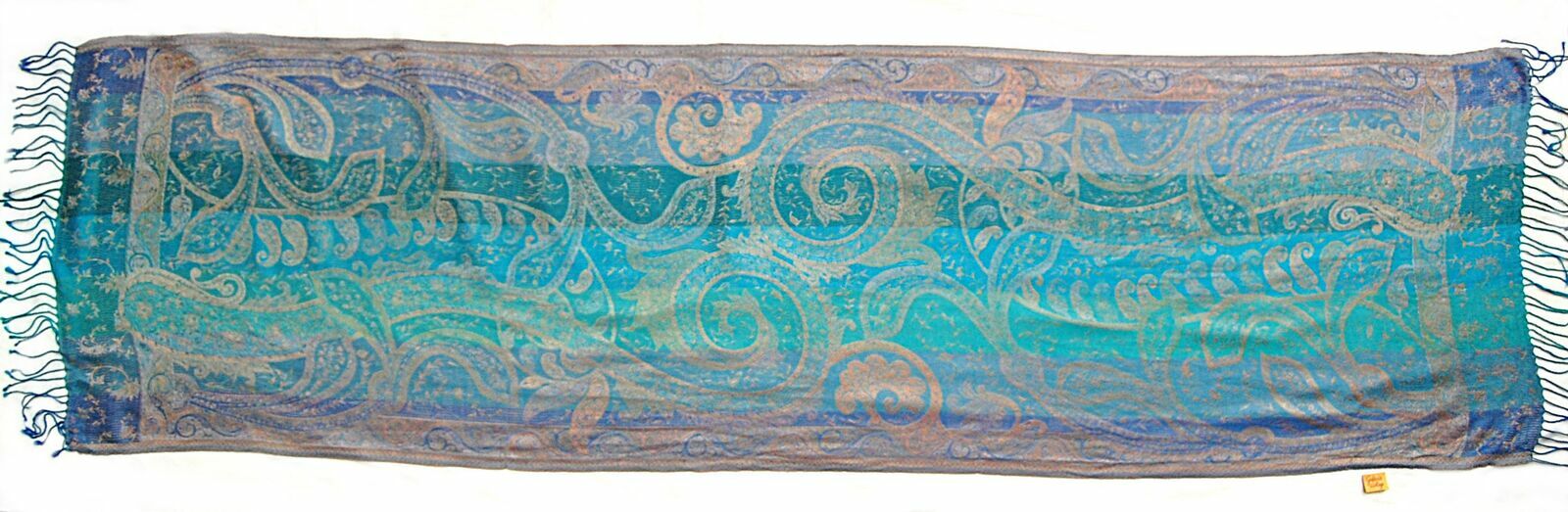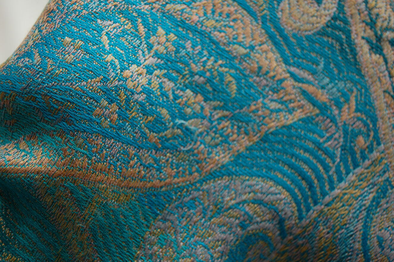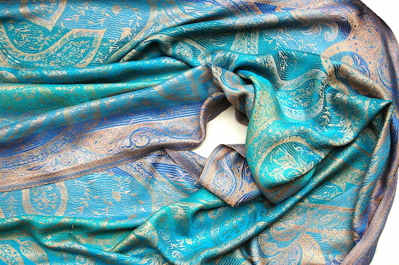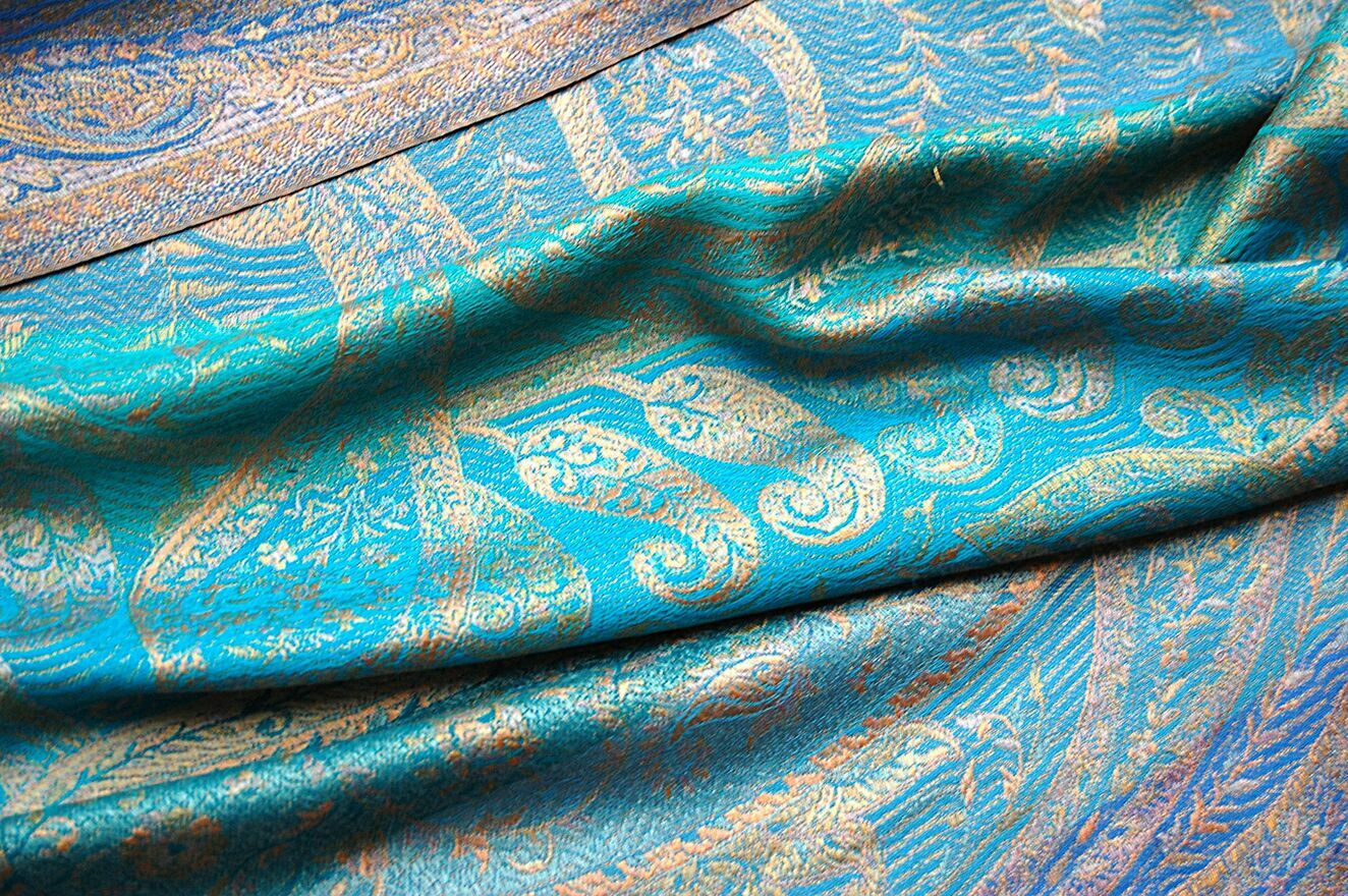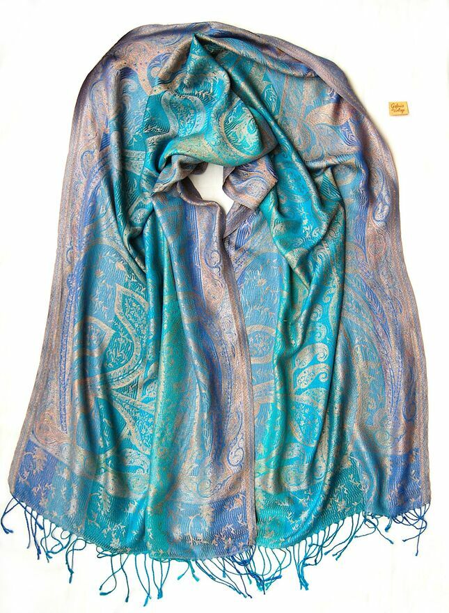 Jedwabny szal Indiska paisley, 100% jedwab turkus fiolet