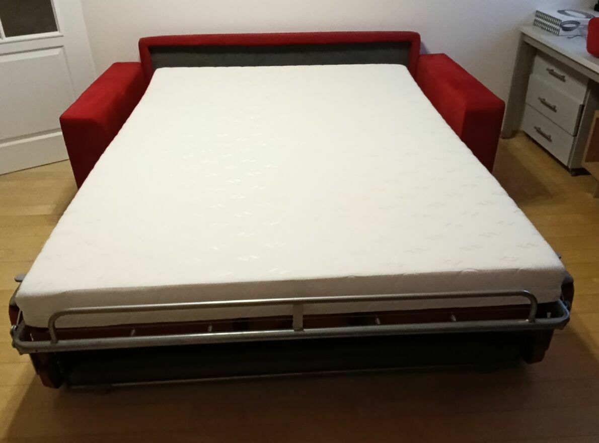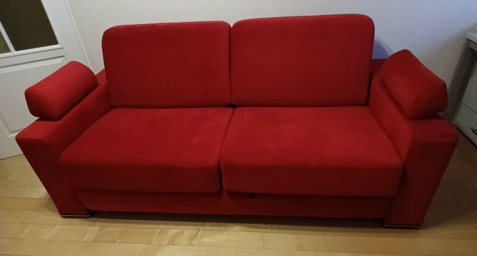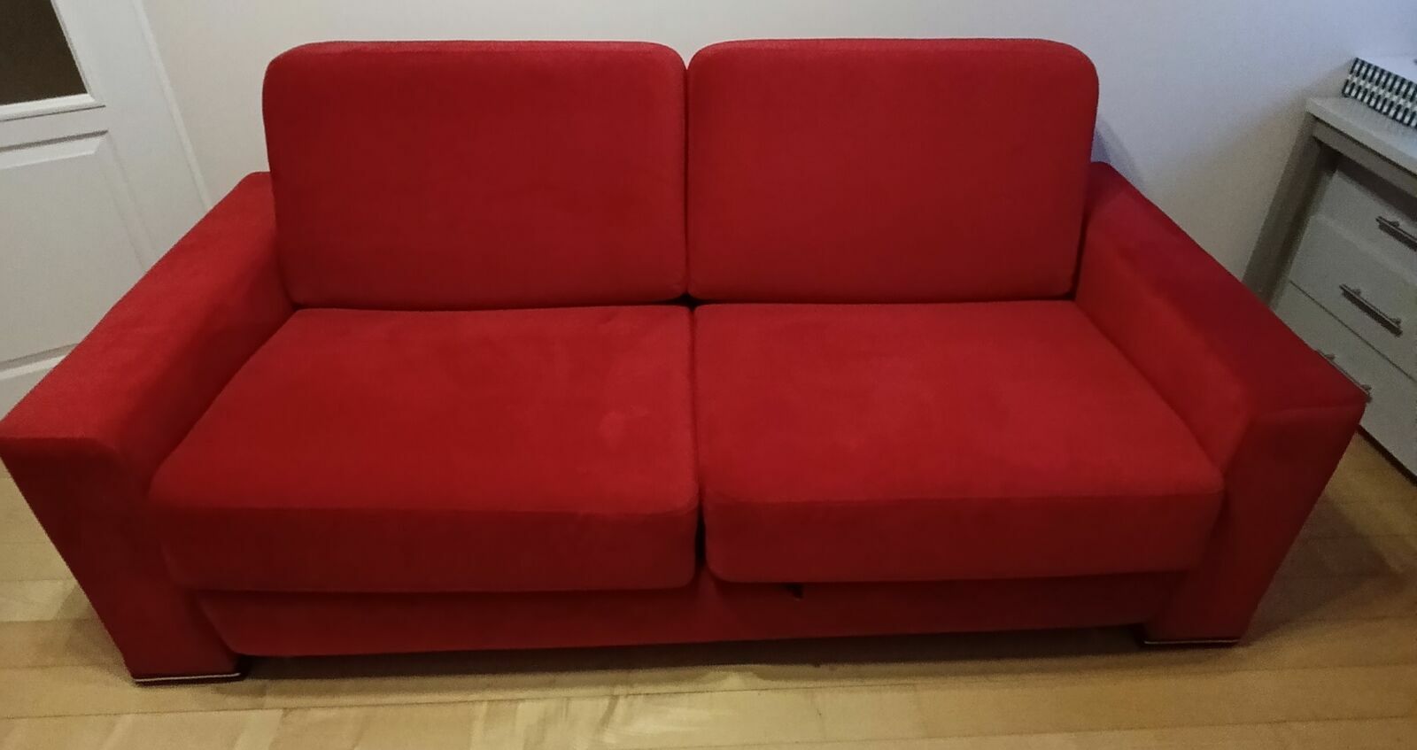 Wyjątkowa i efektowna kanapa rozkładana, z funkcją spania w pięknym ciemnoczerwonym kolorze.Wyjątkowość mebli tego producenta wynika w dużej mierze z trwałych i niezawodnych mechanizmów Renato Nisi oraz doskonałych materiałów użytych do ich wykonania. Jakość wykonania decyduje też o cenie. Przy zakupie kosztowała 3600 zł. (model z 2016 roku)
