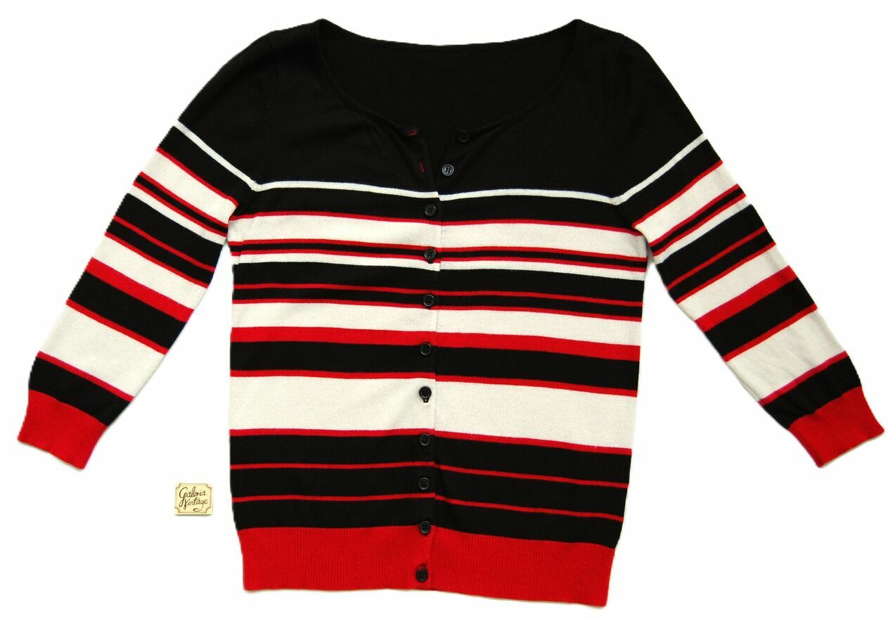 Kardigan Solar 36 S wiskoza paski czarny biały czerwony