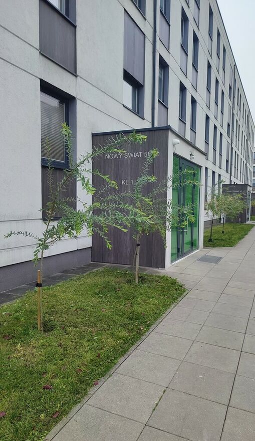 Okolica jest spokojna, osiedle jest ogrodzone. Ulica Nowy Świat jest