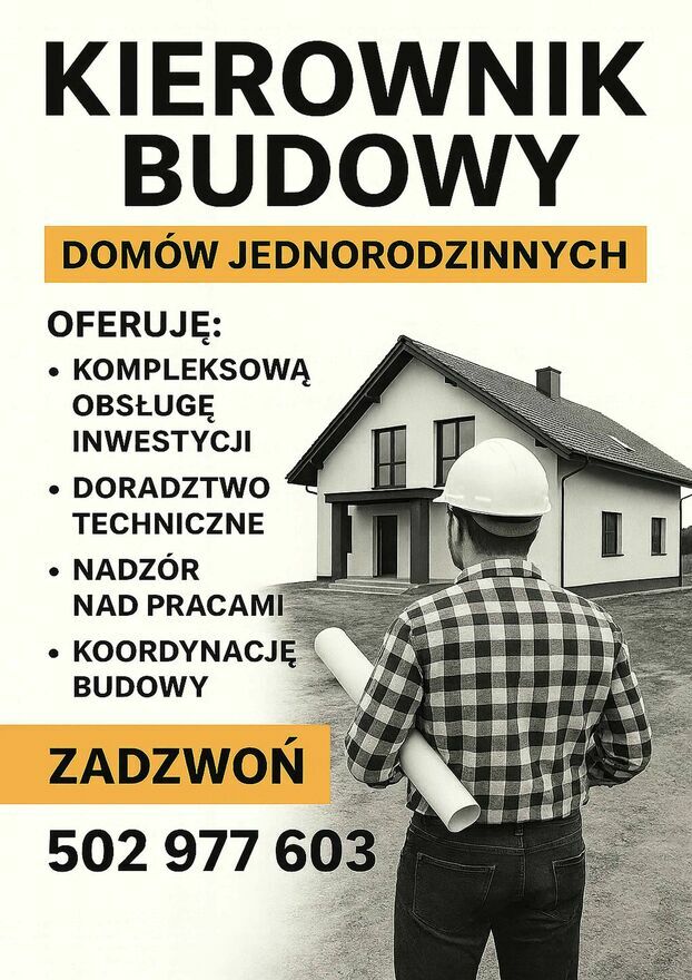 Oferuję profesjonalne usługi kierownika budowy oraz sporządzania kosztorysów budowlanych dla inwestycji prywatnych i publicznych. Specjalizuję się głównie w budowach domów jednorodzinnych, ale obejmę opieką również budowy o innym charakterze.Zakres usług: