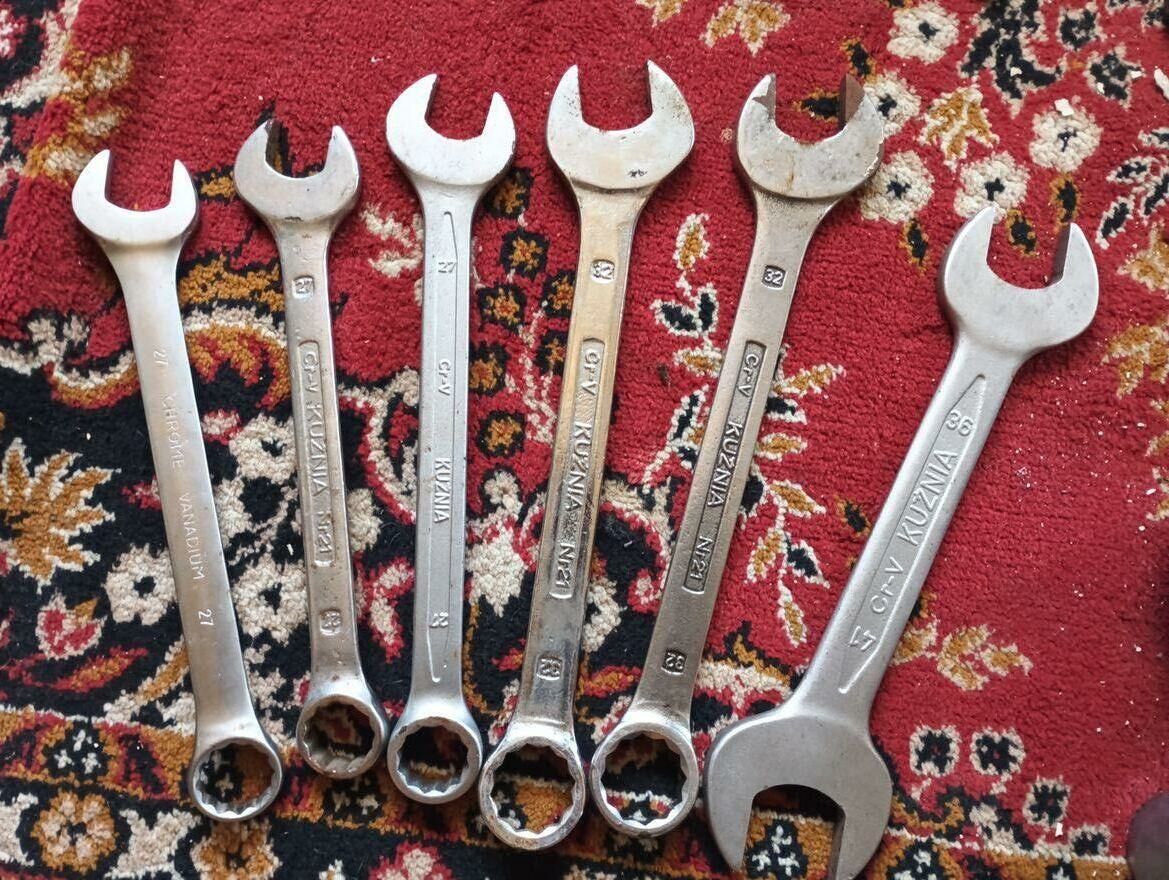 Klucze płaskie firmy KUŹNIA 5 SZTUK i jeden Vadium rozmiary 41/36,2x32i3x27 używane w bardzo dobrym stanie solidne cena 350 złRafał G.