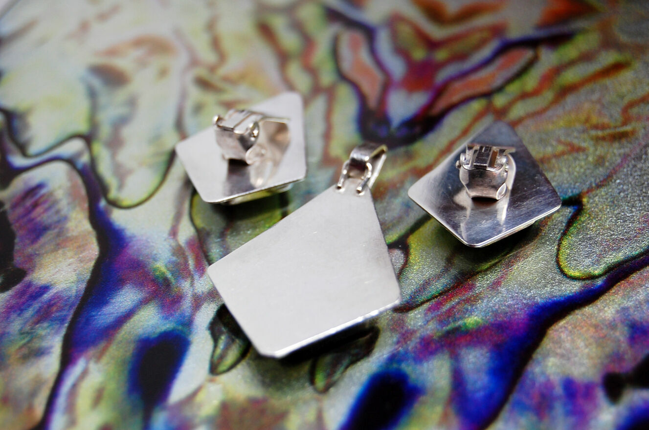 Komplet biżuterii klipsy wisior romb masa perłowa srebro 925