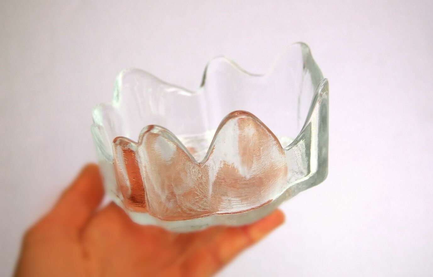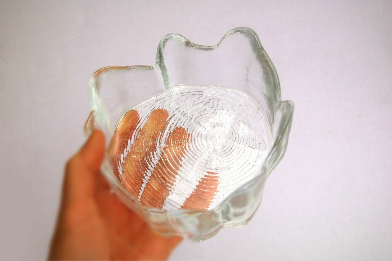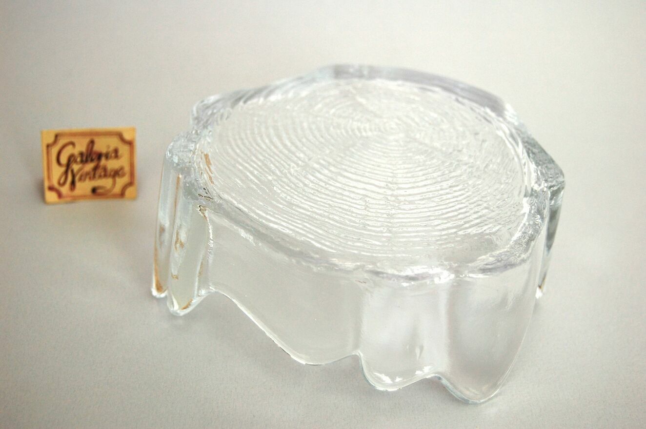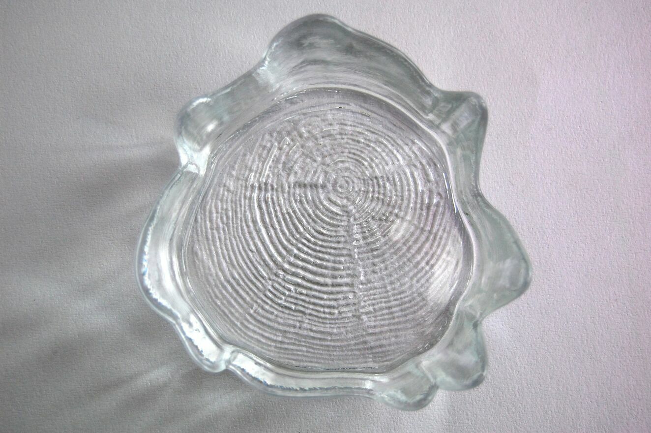 Unikatowa, kryształowa miska o organicznym, asymetrycznym kształcie pnia drzewa - projektant Bengt Edenfalk dla Skruf Sweden. Datowanie: lata 70 XX w. Kryształowe, przezropczyste szkło o zróżnicowanej fakturze inspirowanej naturą pięknie załamuje światło.Projekt misy wpisuje się w aktualne trendy wnętrzarskie, nawiązujące do natury, w tym styl skandynawski.