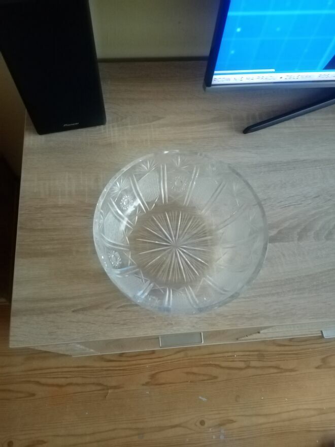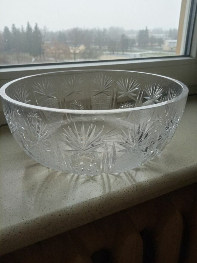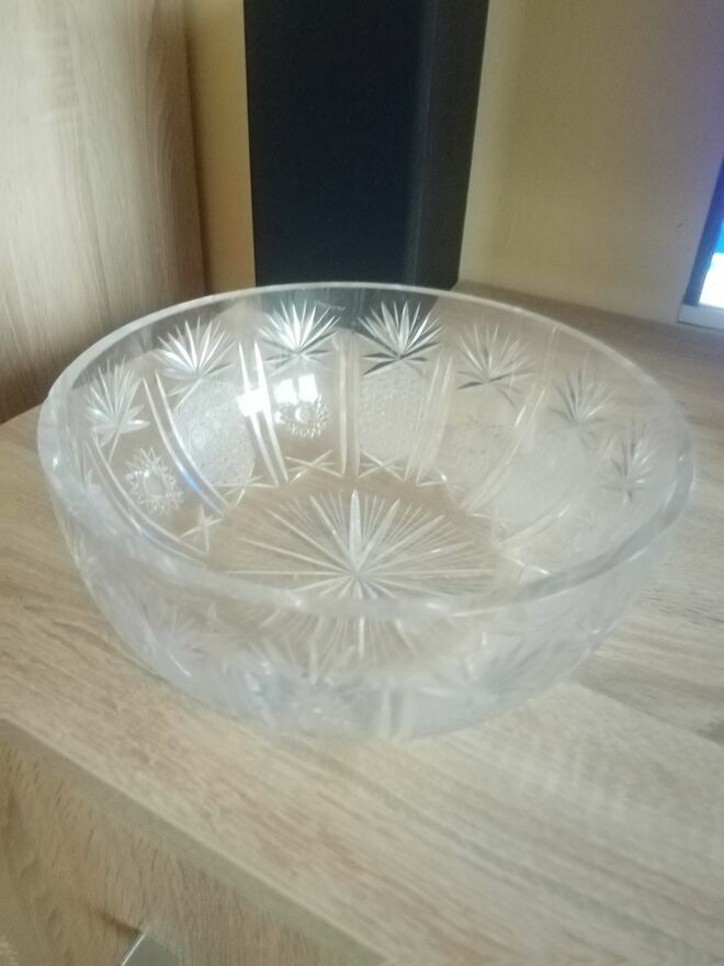 Duża kryształowa salaterka na owoce, z czasów PRLMonika