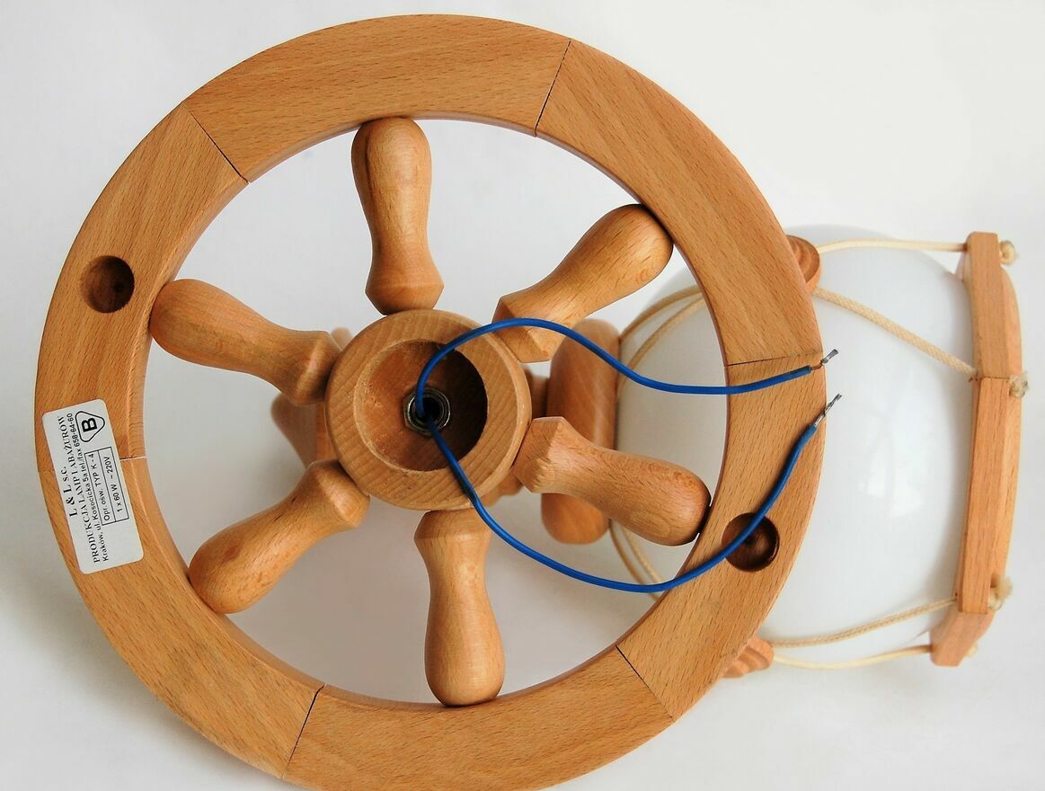 Lampa marynistyczna drewniana kinkiet koło sterowe drewno