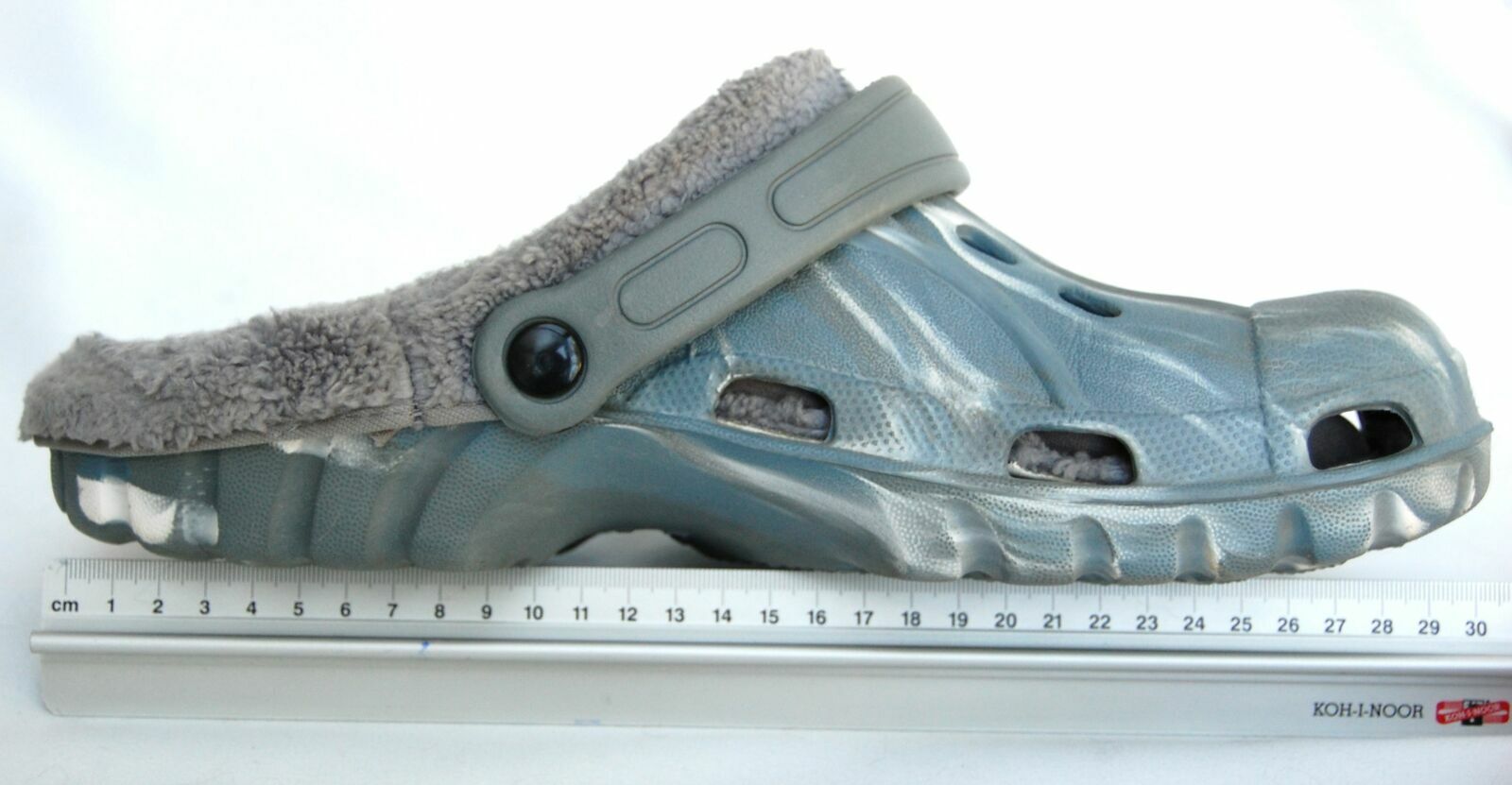 Chodaki ogrodowe z wyściółką, Livergy, rozmiar 44. Materiał: tworzywo sztuczne. Kolor szary z białymi i szaroniebieskimi pasmami. Wyściółka jest wykonana z poliestru, ma kolor szary. Jest odpinana. Buty są nowe.CENA NIE PODLEGA NEGOCJACJI.