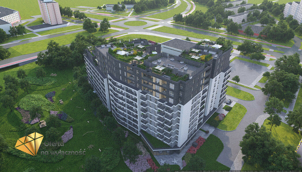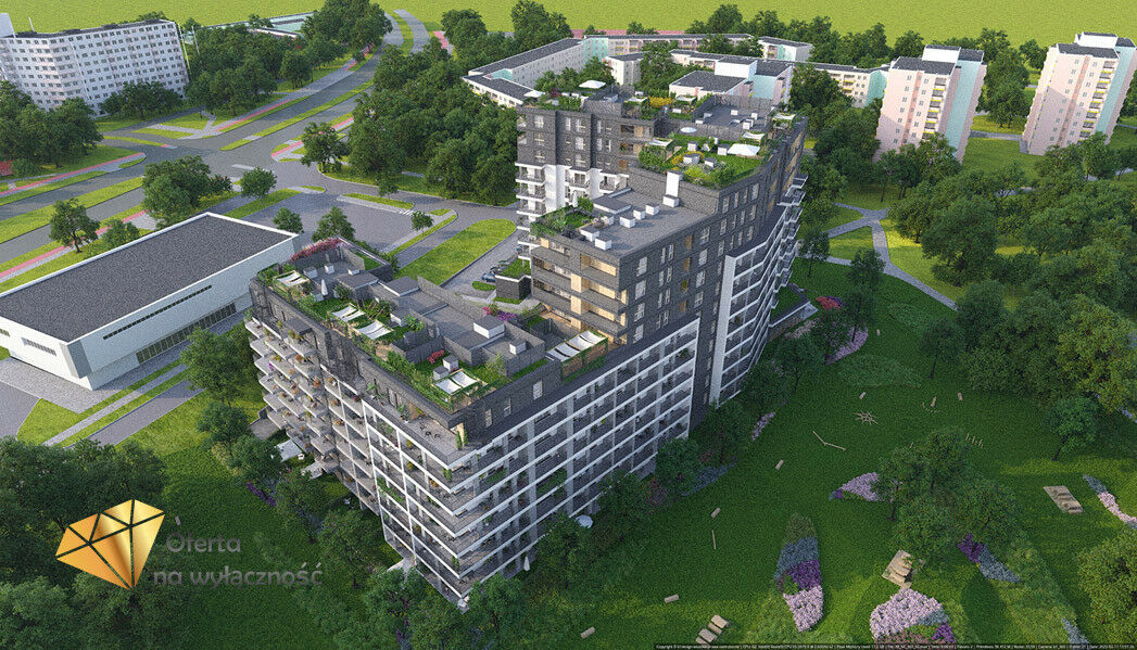 - Standard: Certyfikat BREEAM, zielone tarasy, antysmogowa kostka brukowa, stacje ładowania EV.