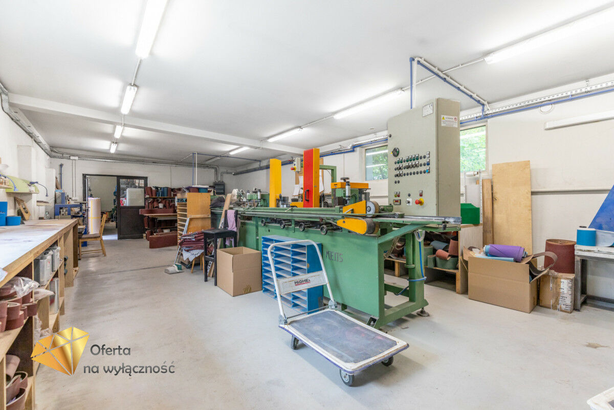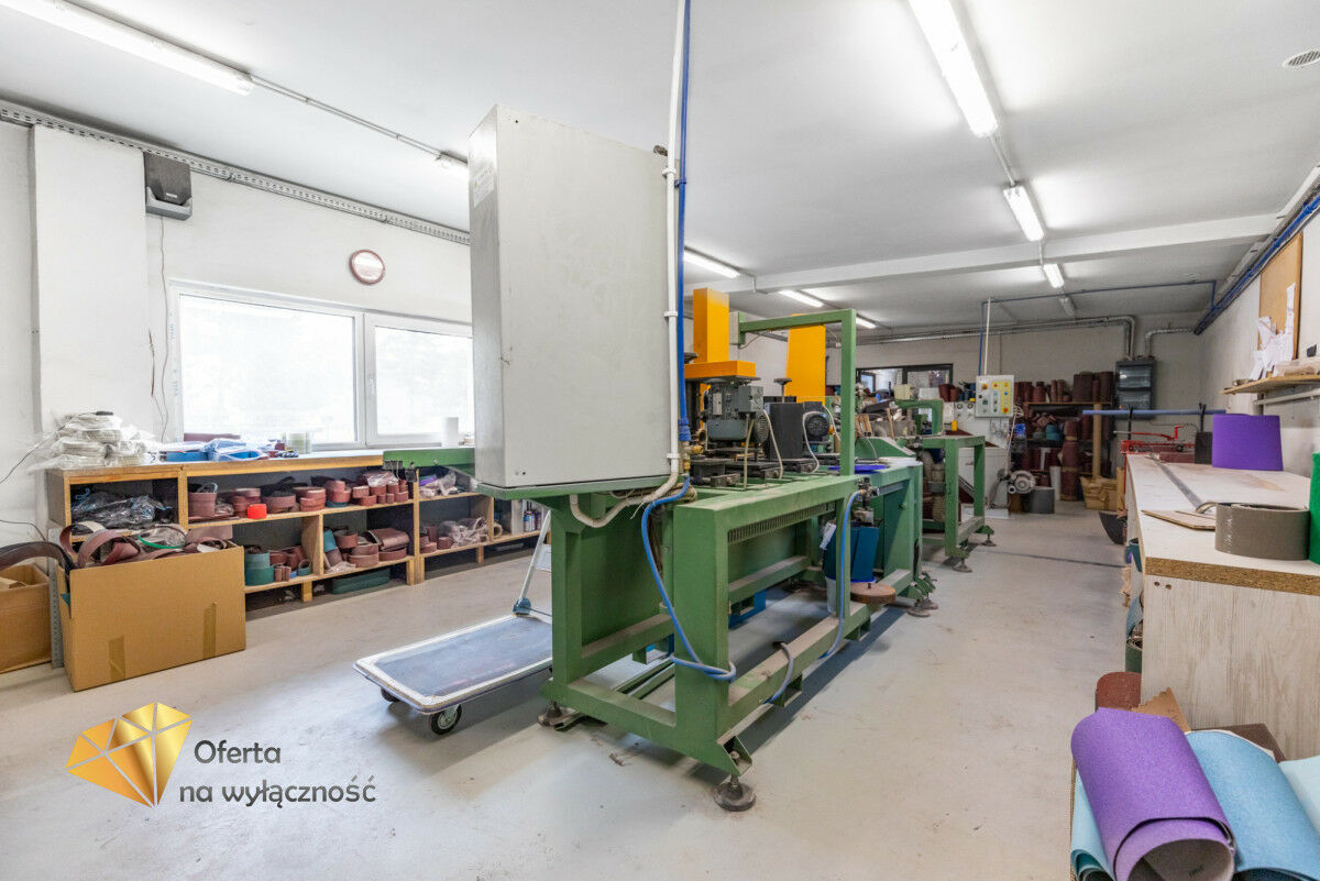 Powierzchnia: budynek murowany: 310m² działka: 1011m2. Budynek z magazynem o wysokości ok 4,5m, powierzchnie produkcyjne z bramą 3m x 2,55m oraz zapłacze socjalne z łazienką z prysznicem oraz aneksem kuchennym.
