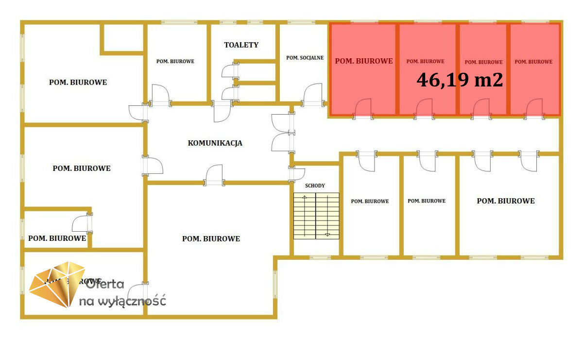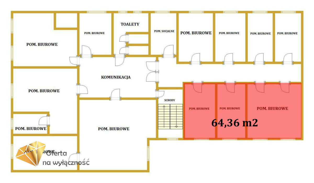 - Trzy kondygnacje z możliwością wynajmu pojedynczych pomieszczeń