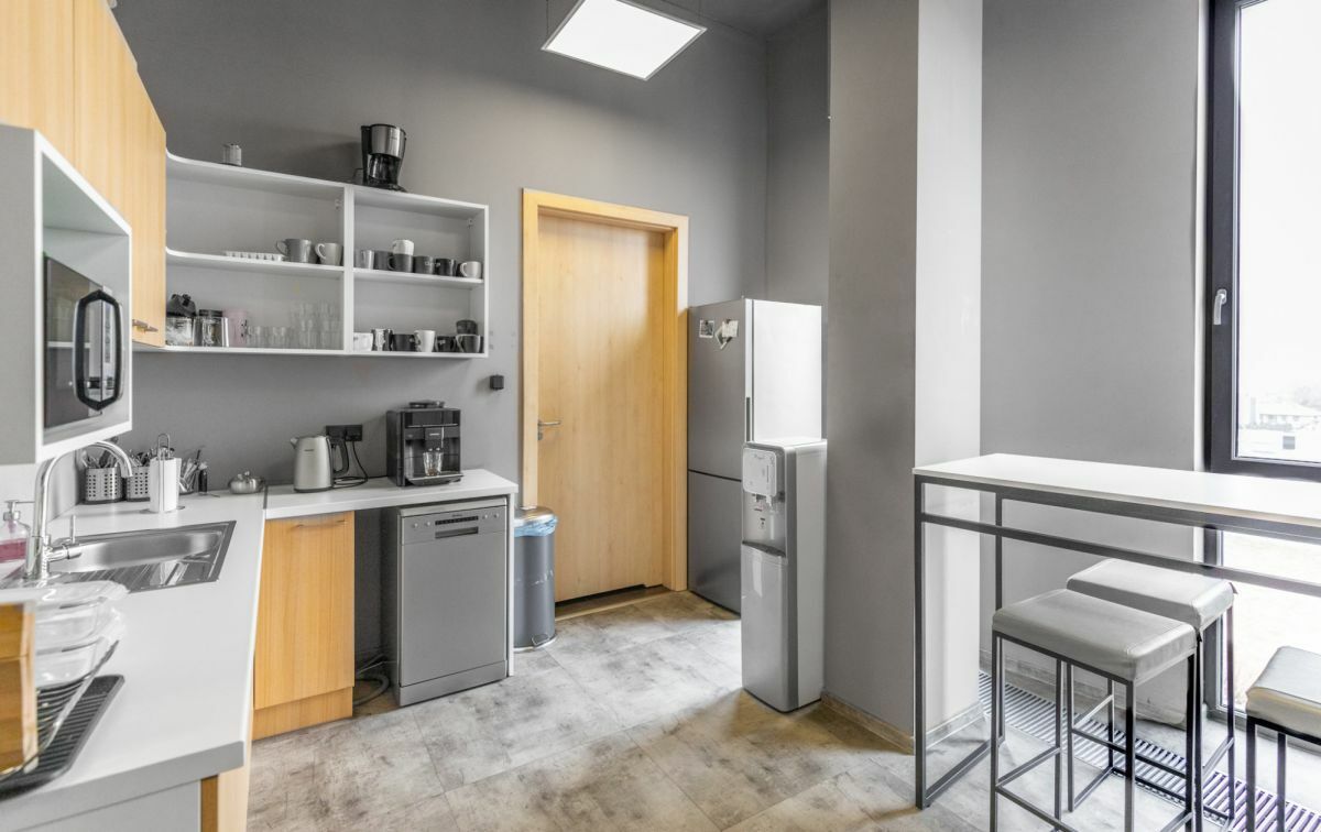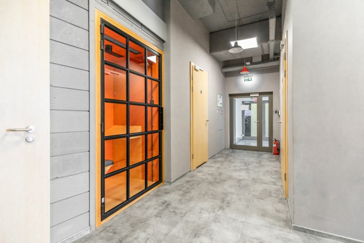 - Infrastruktura IT: Wyposażony w podłogę techniczną z floorboxami oraz światłowód, co zapewnia łatwą aranżację stanowisk pracy i szybką łączność.