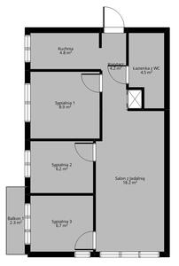 Trzypokojowe mieszkanie o powierzchni projektowej 64,28 m2 położone na drugim piętrze w budynku z wystawą okien na ...