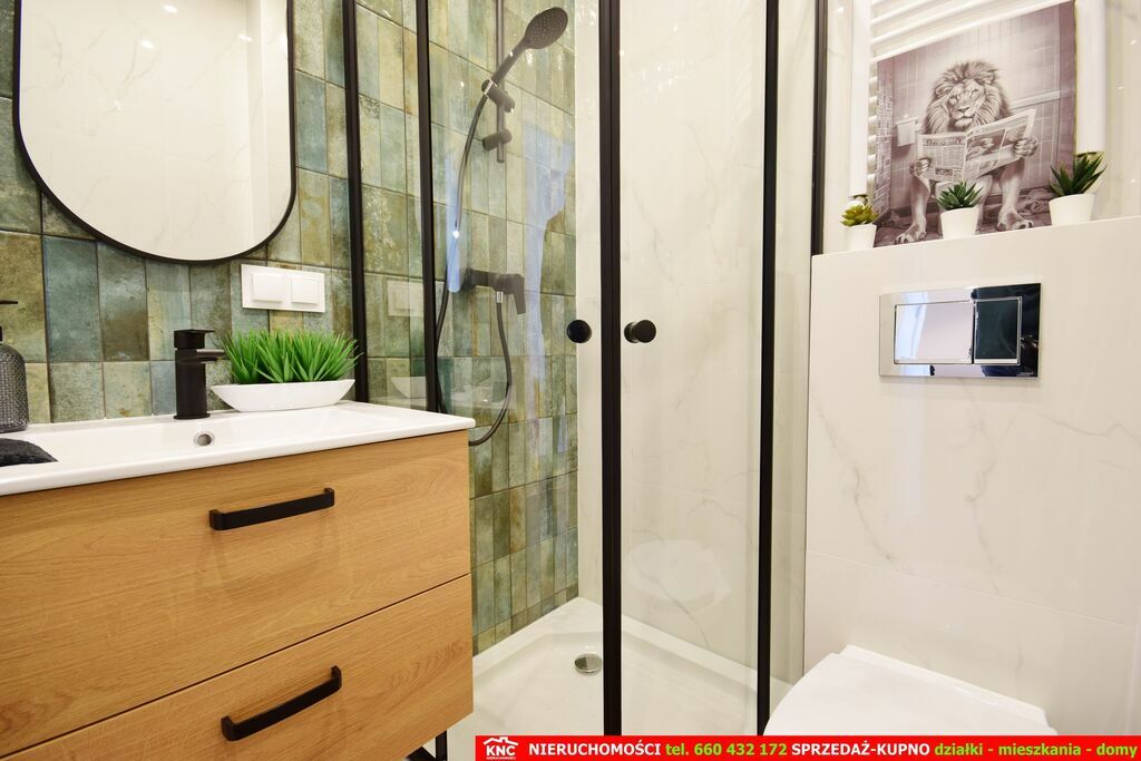 - łazienka: glazura, natrysk, umywalka z szafką;