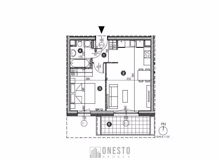 - 37,36 m;- 2 pokoje salon z aneksem kuchennym, sypialnia, łazienka, przedpokój;- Ekspozycja okien: południowa mieszkanie jasne i słoneczne;